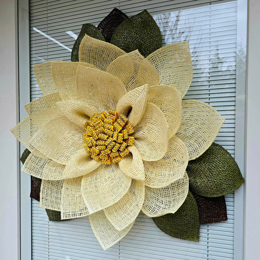 Unique Magnolia Wreath For Front & Double Door, Burlap Flower Porch Decor, Outdoor Spring Summer Fall Winter Seasonal Decoration, Home Gift