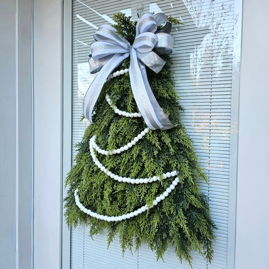 Christmas Tree Wreath For Front Door, Holiday Double Doors Wreaths, Outdoor Xmas Swag