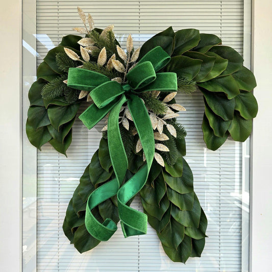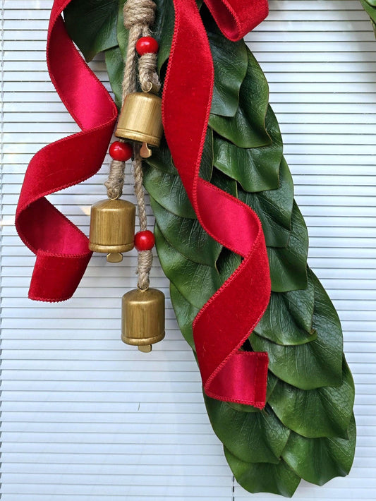 Christmas Wreath For Front Door, Double Doors, Home Decor, Large Elegant Xmas Tree Teardrop Swag With Bells
