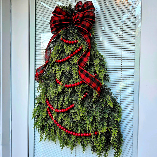 Christmas Tree Wreath For Front Door Double Door Holiday Decor Xmas Teardrop Merry Christmas Wreaths Winter Swag Handmade Home Gift