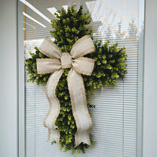 Cross Wreath For Front Door Double Door Wreaths Indoor Outdoor Religious Hanging Swag Jesus Wall Hanger Christian Church Decor Home Gift