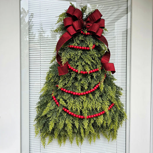 Christmas Tree Wreath For Front Door, Double Doors, Porch Decor, Indoor Outdoor Holiday Home Decor, Winter Seasonal Decoration, Xmas Swag