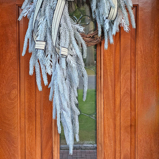 Winter Wreath For Front Door, Christmas Decor, Double Door Wreaths, Holiday Xmas Porch Decor, Seasonal Mantle Decoration, Flocked Home Swag