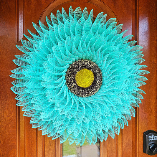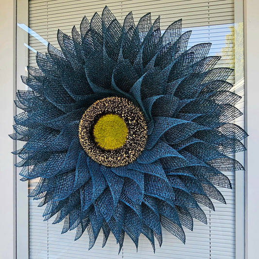 Sunflower Wreath For Front Door Double Door Indoor Outdoor Spring Summer Fall Seasonal Decor Blue Burlap Flower Floral Decoration Home Gift