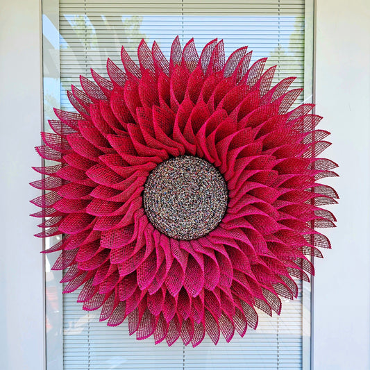 XL Outdoor Pink Sunflower Front & Double Door Wreath, Large Handmade Burlap Flower, Spring Summer Fall Winter Porch Decor, Bling Home Gift