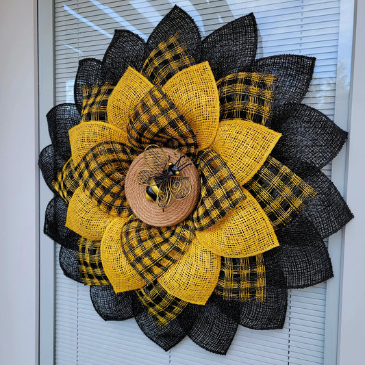 Spring Sunflower Bumble Bee Wreath For Front Door Double Door Wreaths Outdoor Decor Large Yellow Black Burlap Flower Bumblebee Home Gift
