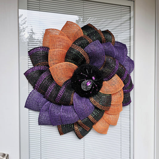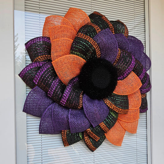Unique Halloween Sunflower Spider Wreath For Front Door, Double Door, Outdoor Porch Decor, Purple Orange Black Fall Decoration, Home Gift