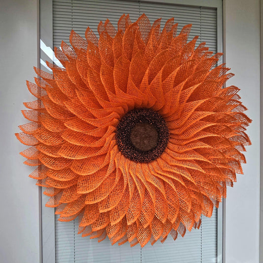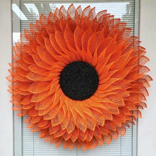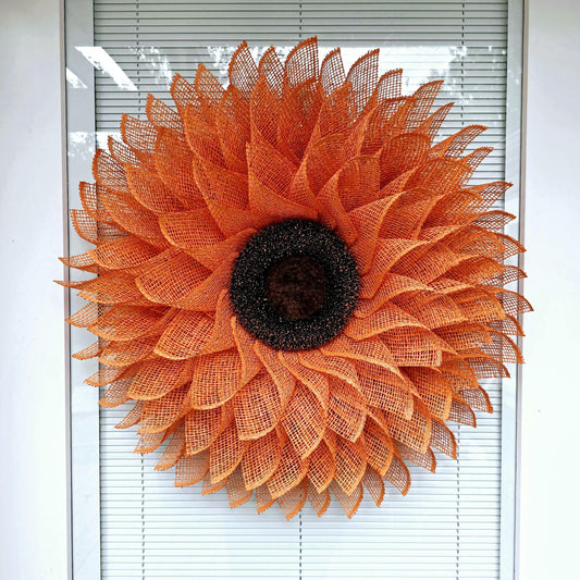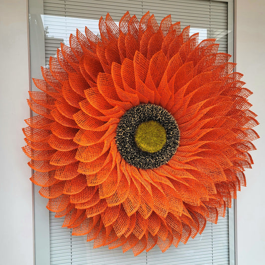 Sunflower Wreath For Front Door, Double Door, Outdoor Spring Summer Fall Porch Decor, Orange Bling Burlap Flower, Wall Decoration, Home Gift