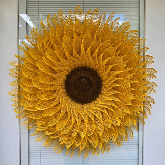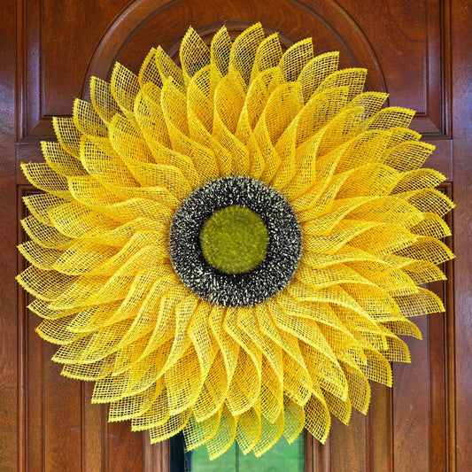 Sunflower Wreath For Front Door, Double Doors, Indoor Outdoor Spring Summer Fall Home Decor, Yellow Burlap Flower, Porch Decoration, Gift
