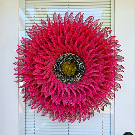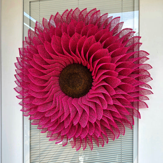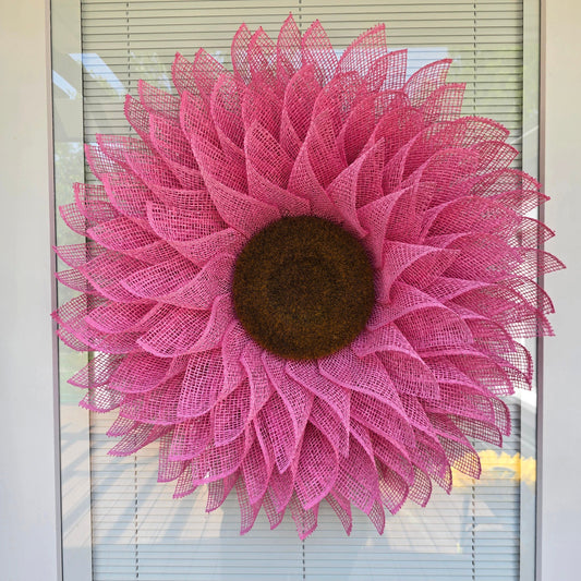 Pink Sunflower Wreath For Front Door, Double Door, Spring Summer Porch Decor, Extra Large Burlap Flower, Outdoor Decoration Floral Home Gift