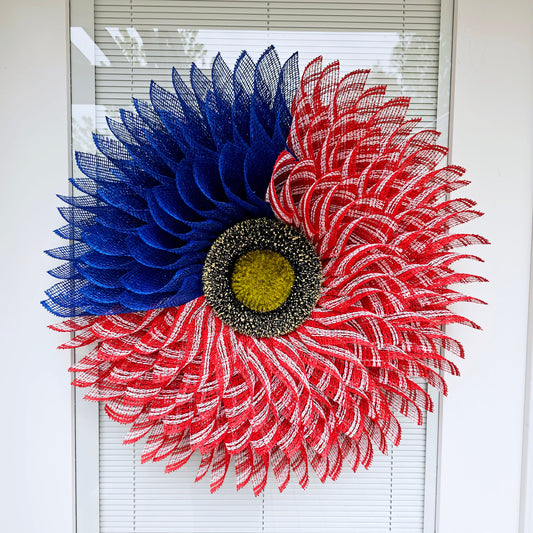 XL American Flag Wreath For Front & Double Door, Outdoor Flower Porch Decor For July 4th Memorial And Labor Day USA In Red White Blue Burlap