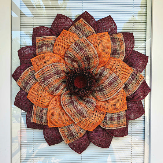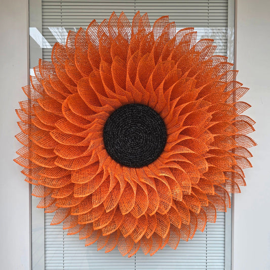 XL Spring Summer Front Door Wreath, Double Door Decor, Outdoor Orange Burlap Daisy Flower, Home Sunflower Decoration, Handmade Bling Gift