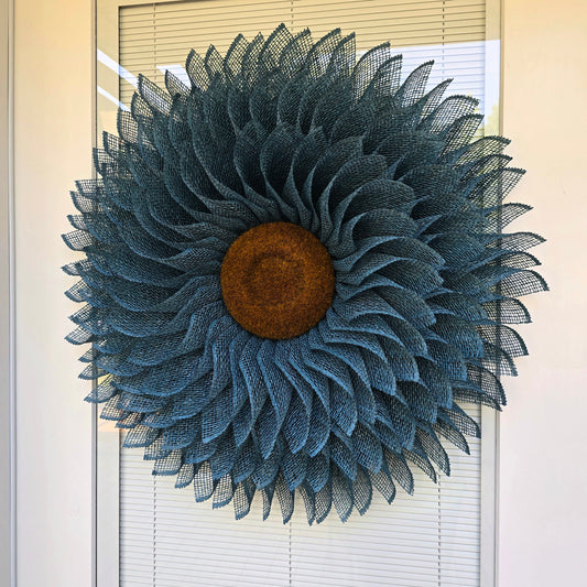 Sunflower Wreath for Front Door Double Door Wreaths Indoor Outdoor Spring Summer Fall Floral Home Decor Blue Burlap Flower Housewarming Gift