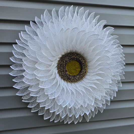 White Flower Wreath For Front Door, Double Door, Outdoor Spring Summer Fall Porch Decor, Daisy Wall Flower Decoration, Sunflower Home Gift