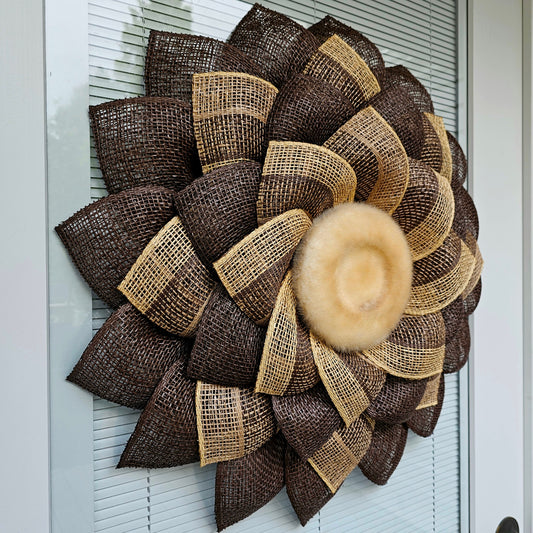 Pink Sunflower Wreath For Front Door, Double Door Decor, Spring Summer Wreaths, Fall Decor, Large Burlap Flower, Home Decoration, Gift Idea