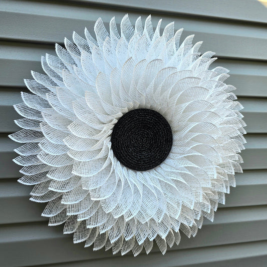 White Burlap Flower Wreath For Front Door, Double Door, Outdoor Spring Summer Fall Porch Decor, Sunflower Wall Decoration, Daisy Home Gift