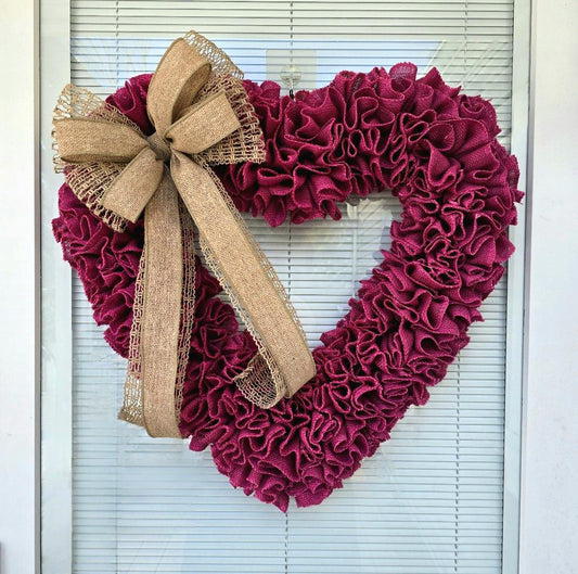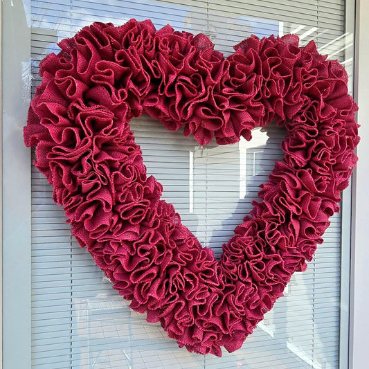 Valentine Day Wreath For Front Door - Pink Burlap Heart Shaped Vday Home Decor