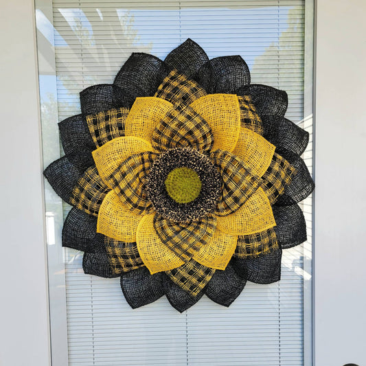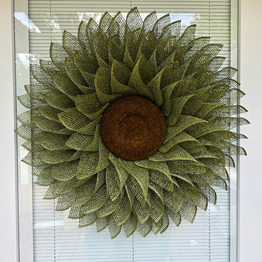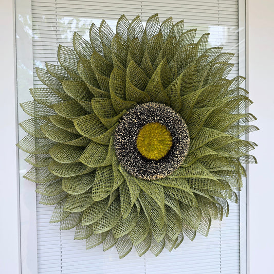 Sunflower Wreath For Front Door Double Door Indoor Outdoor Spring Summer Fall Seasonal Decor Green Burlap Flower Floral Decoration Home Gift