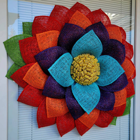 XL Unique Rainbow Sunflower Front Door Burlap Flower Wreath For Outdoor Spring Summer Seasonal Porch Decorations Home Decor House Gift Ideas