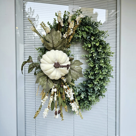 Fall Wreath for Front Door, Double Door Wreath, Thanksgiving Oval Swag, Autumn Harvest Porch Decor, Cream Pumpkin Wall Decoration, Home Gift