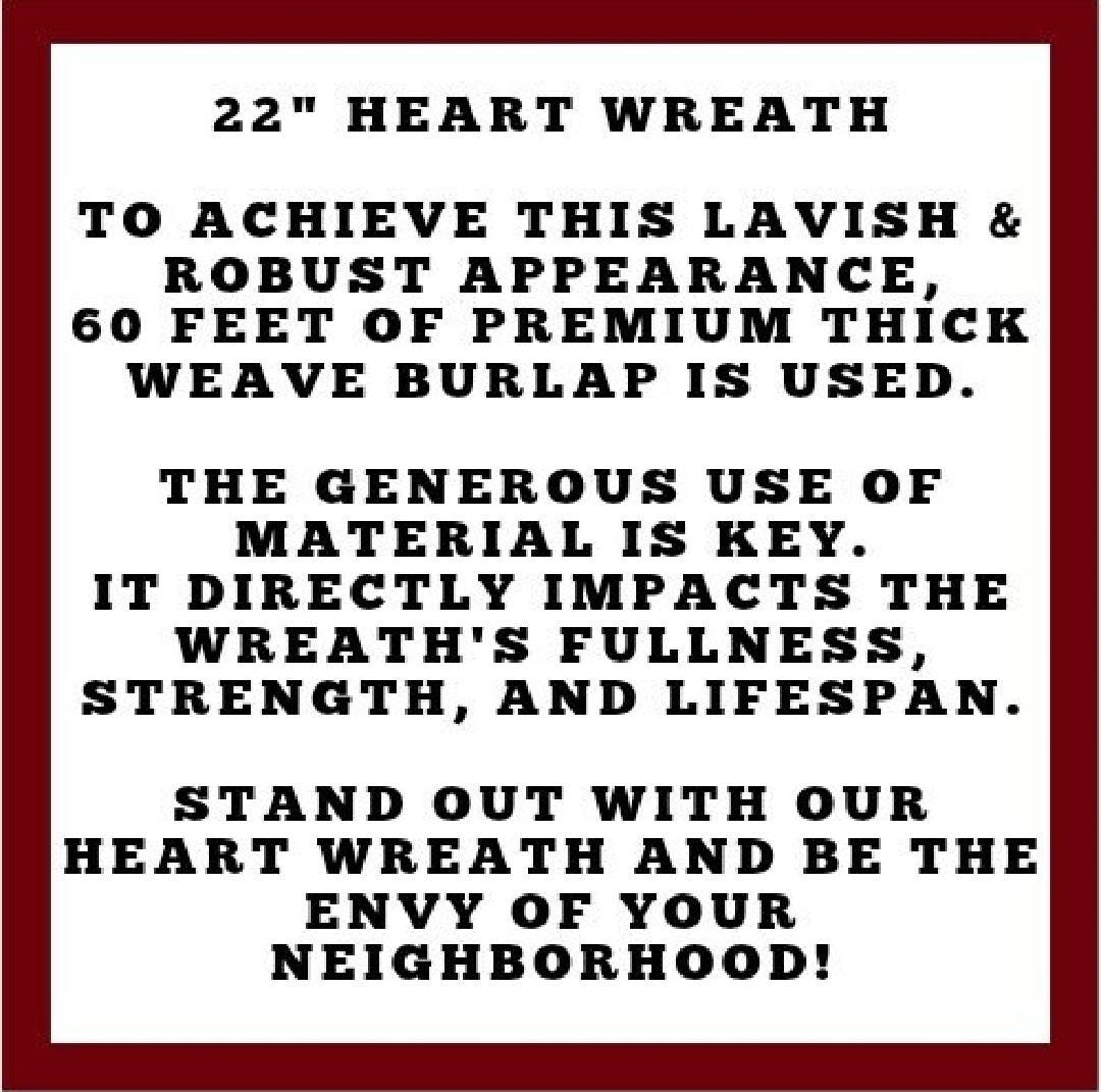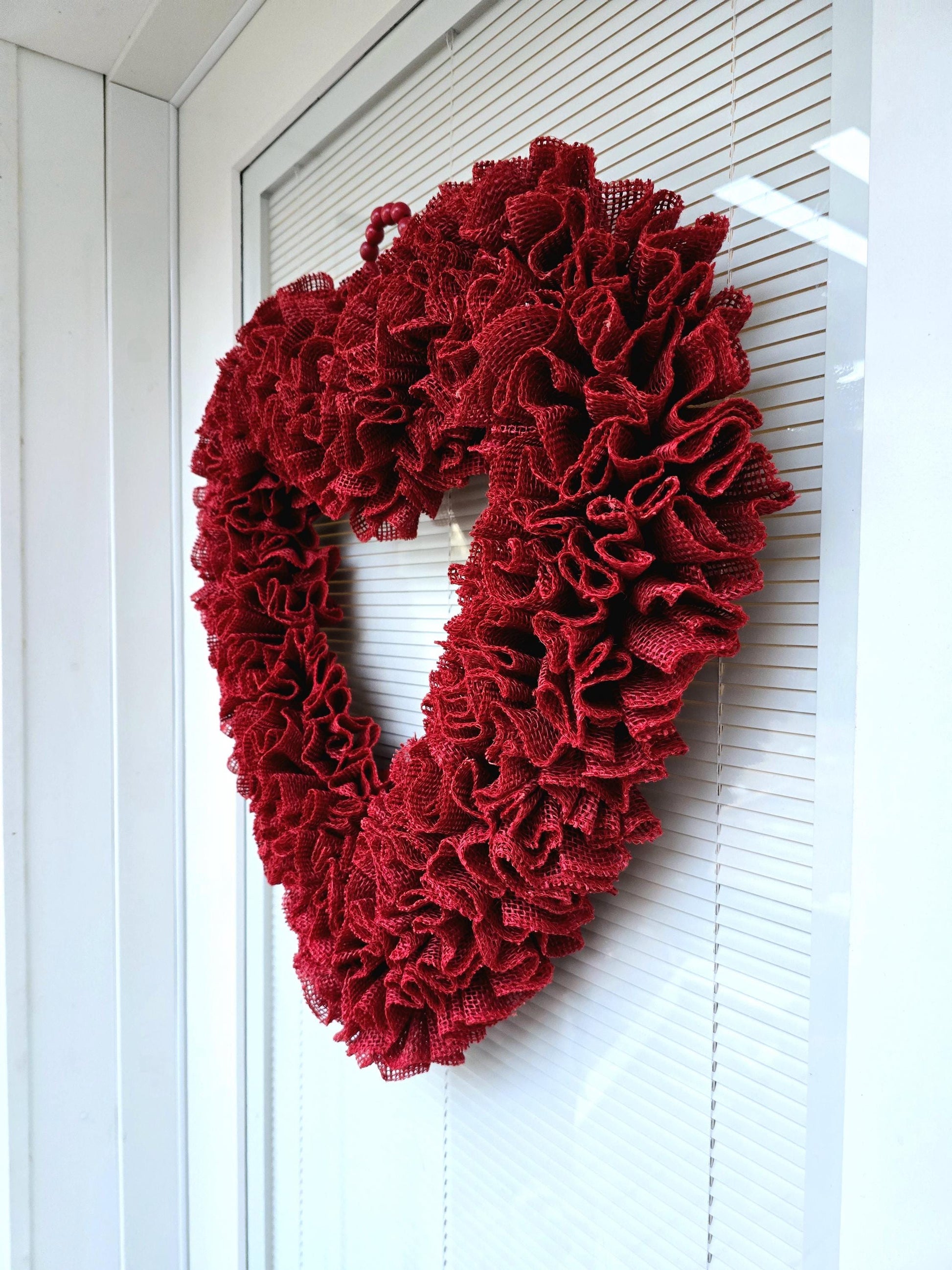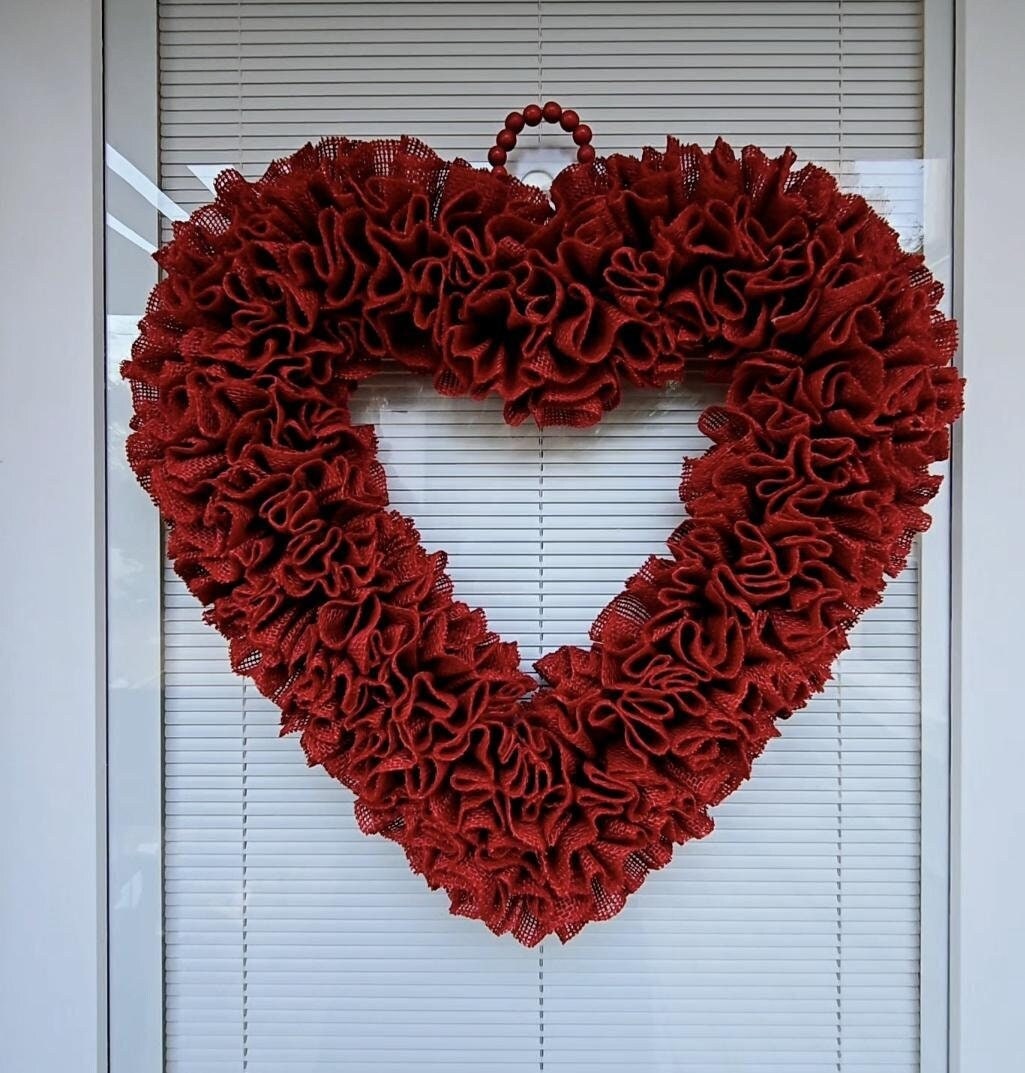 - Handcrafted with 60 feet of premium thick-weave burlap, this heart-shaped wreath is perfect for Valentine’s Day, weddings, anniversaries, or everyday rustic home decor.