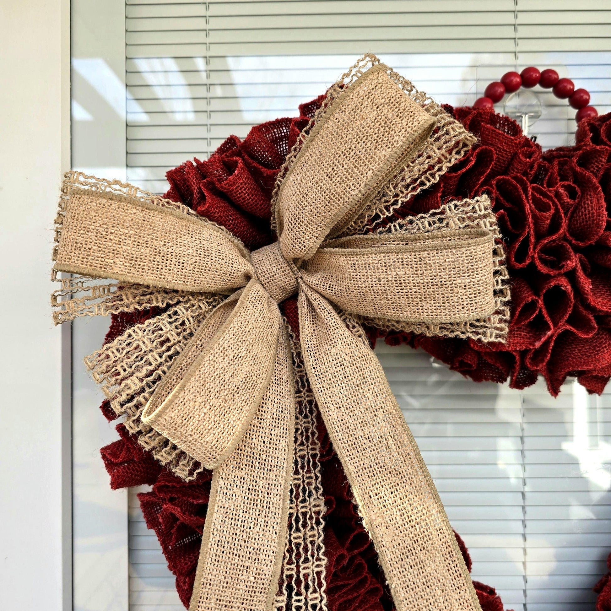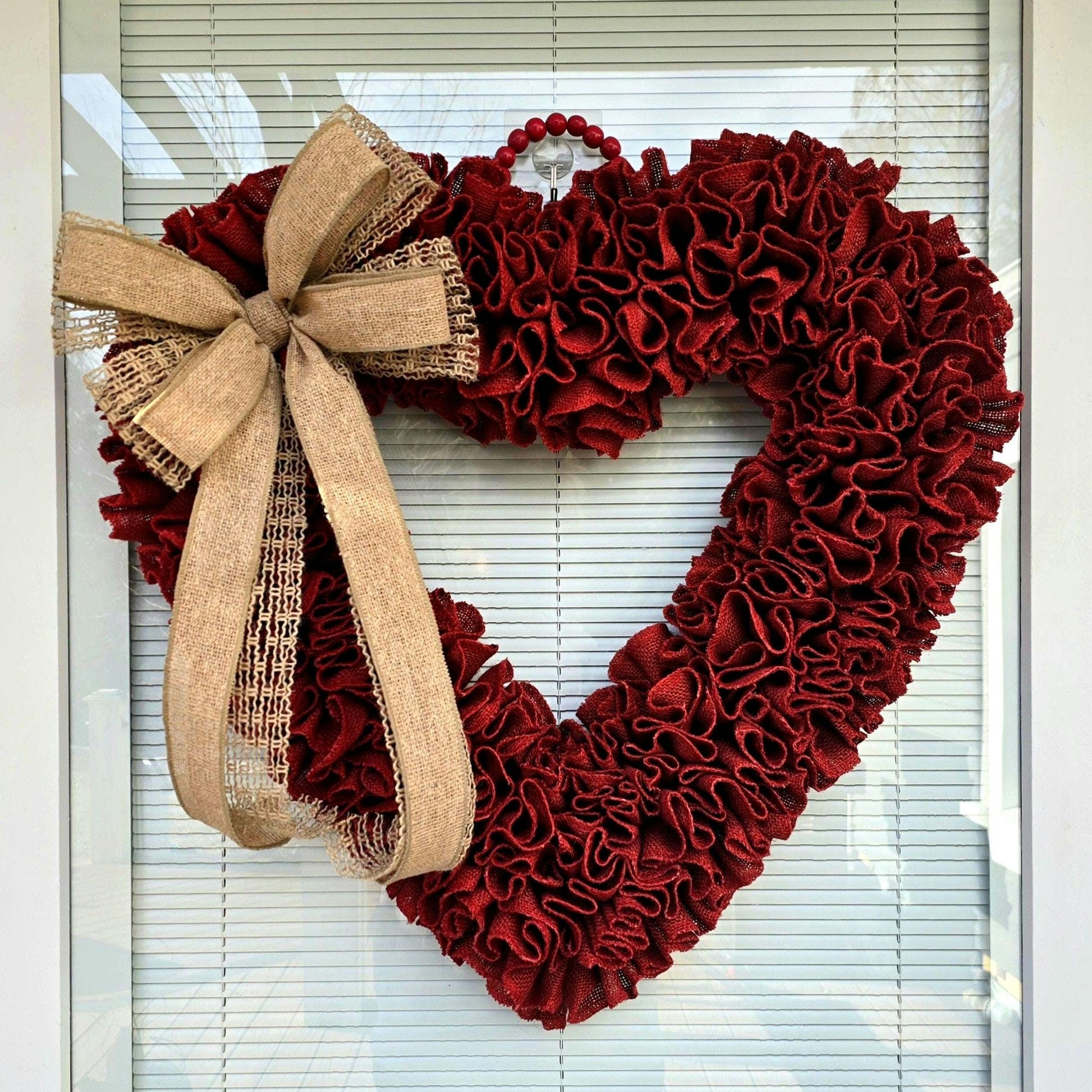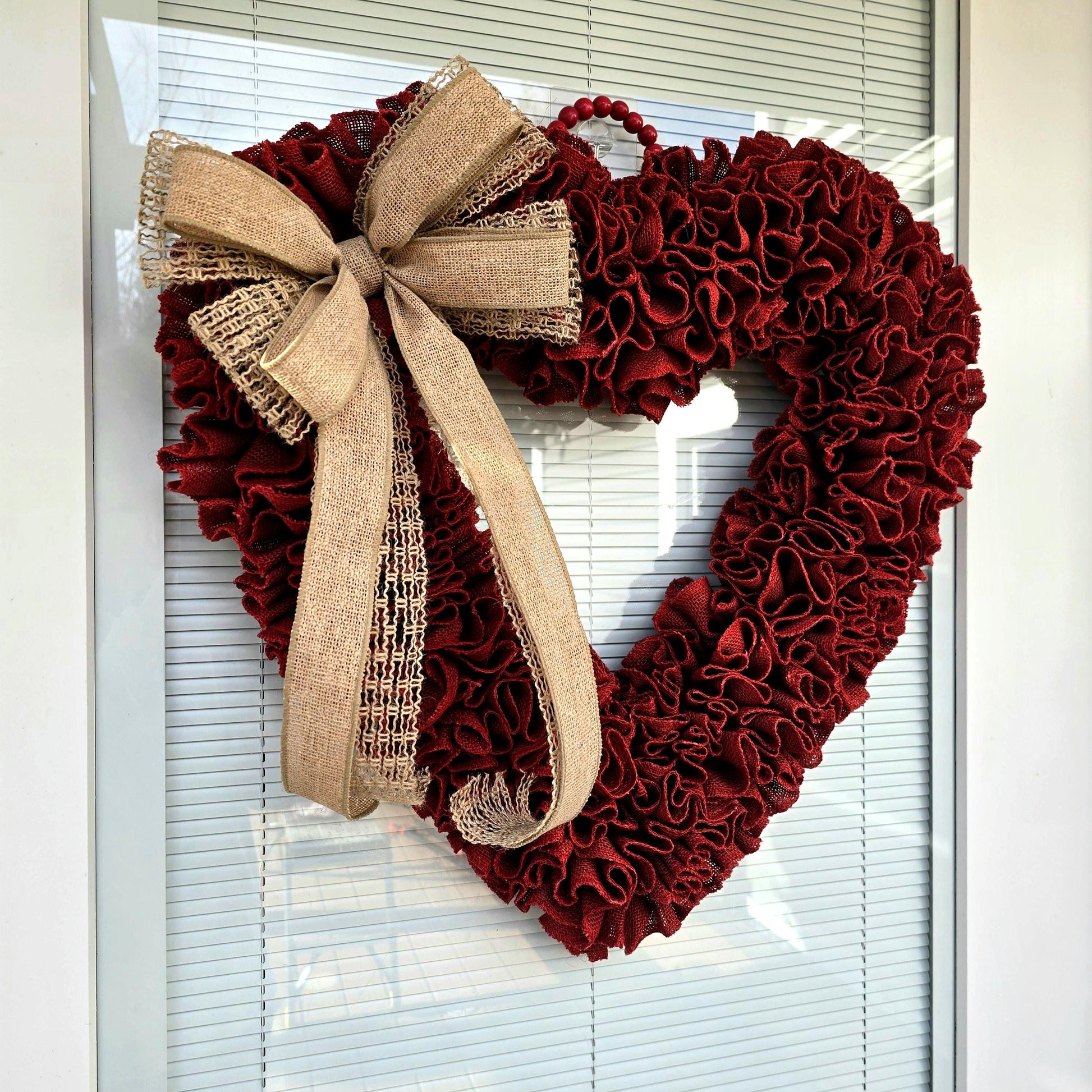 - Beautifully handcrafted heart-shaped wreath using 60 feet of premium burlap.