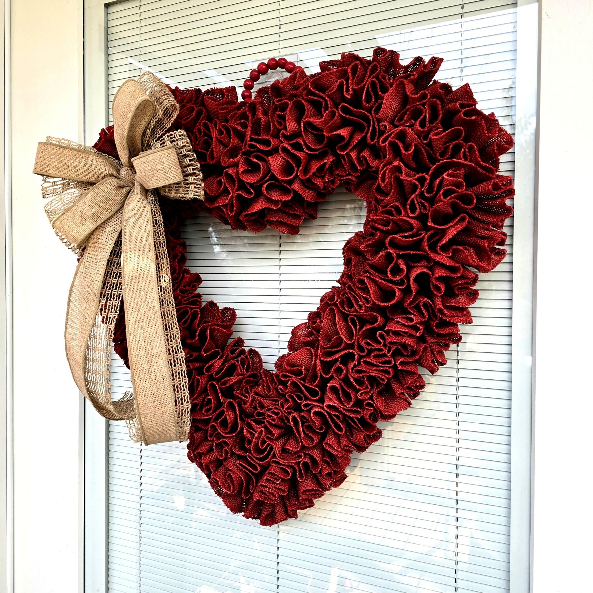 22" Valentines Day Wreath For Front Door Double Door Indoor Outdoor Vday Home Decor Large Red Burlap Heart Shaped Wreaths Housewarming Gift