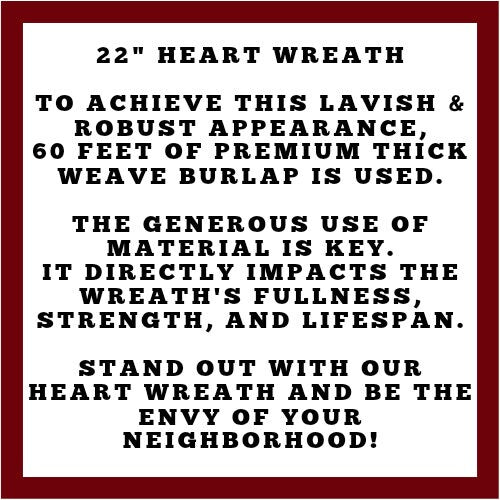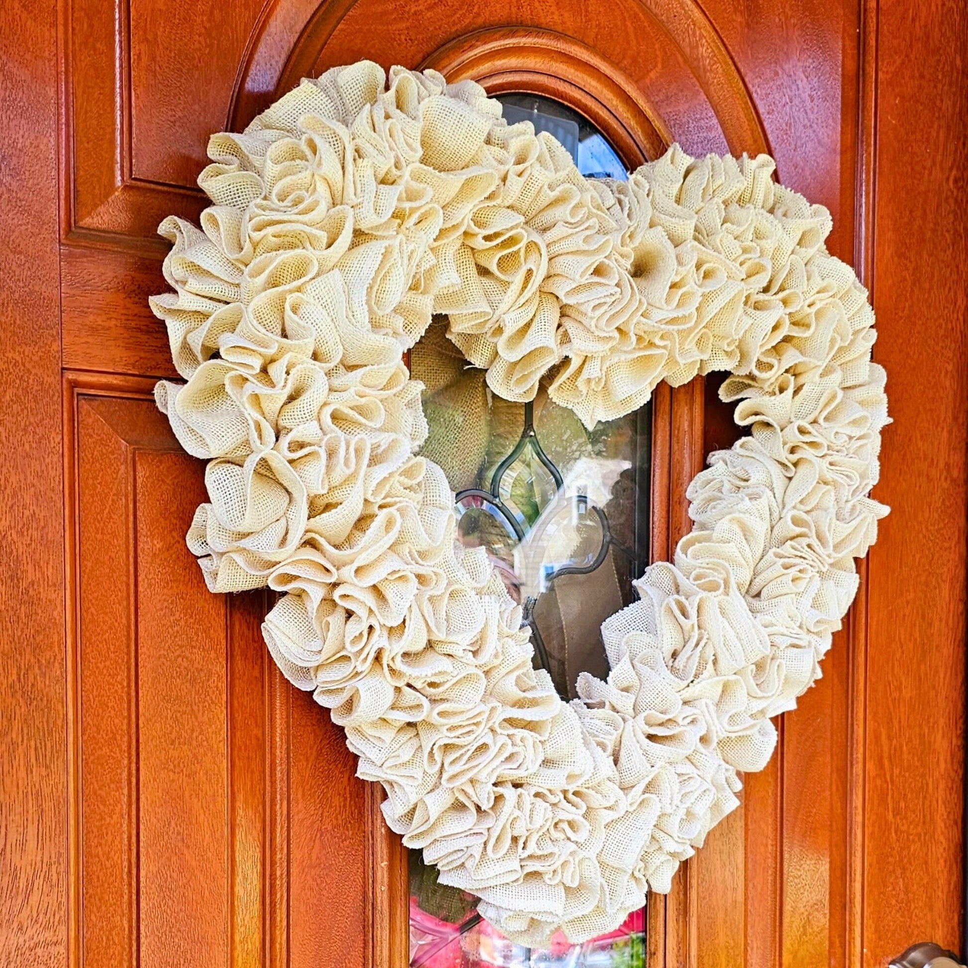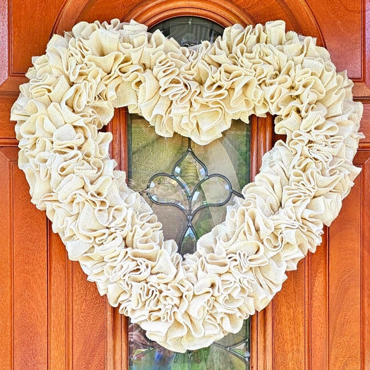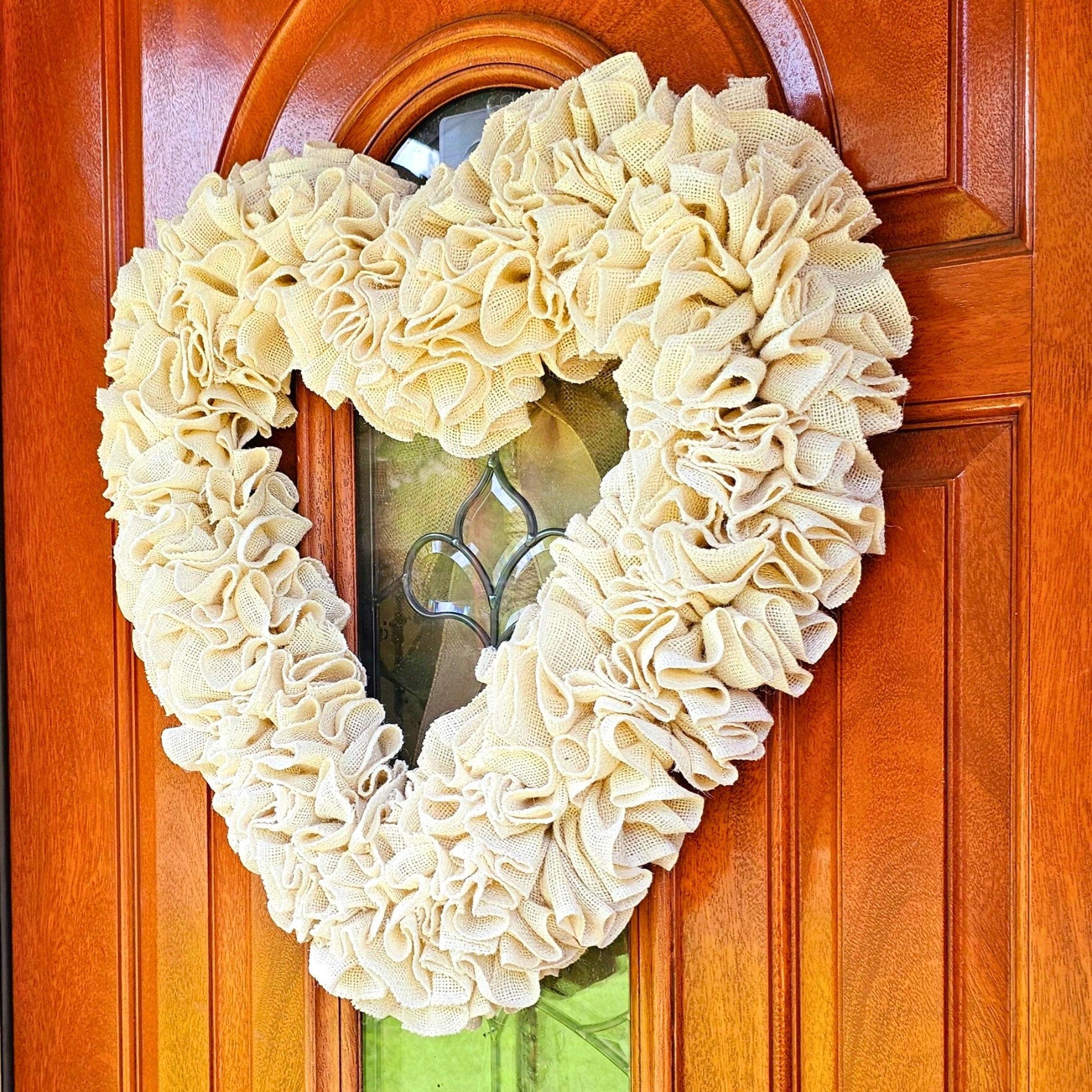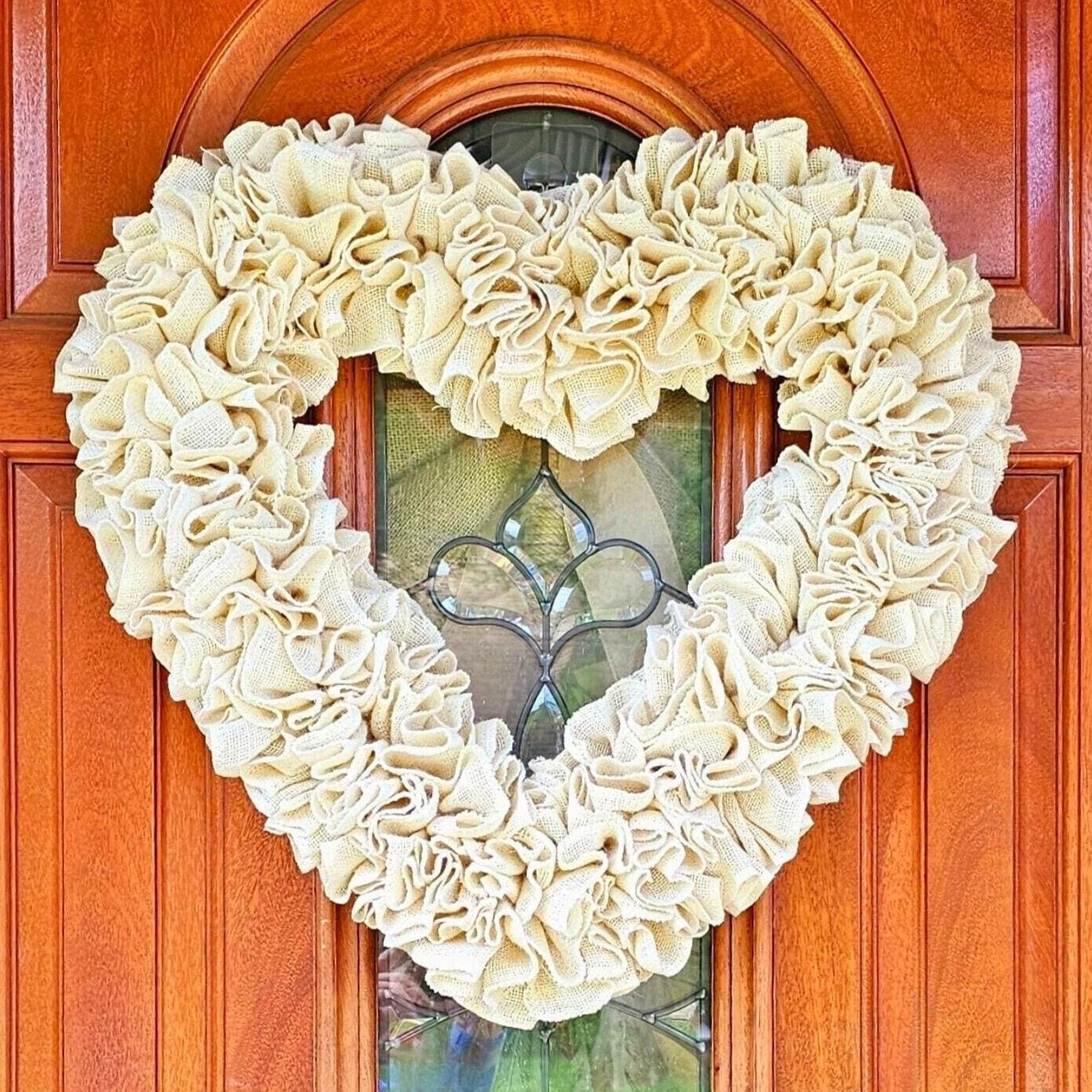 - Handcrafted with 60 feet of premium thick-weave burlap, this heart-shaped wreath is perfect for Valentine’s Day, weddings, anniversaries, or everyday rustic home decor.