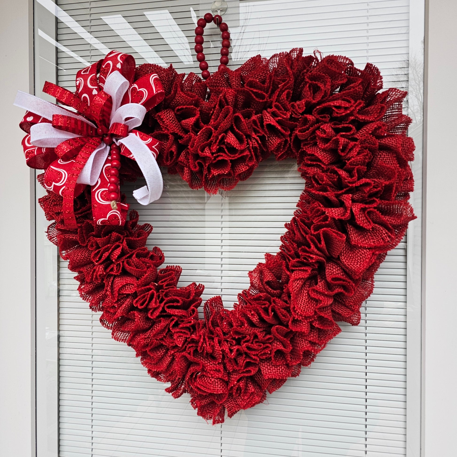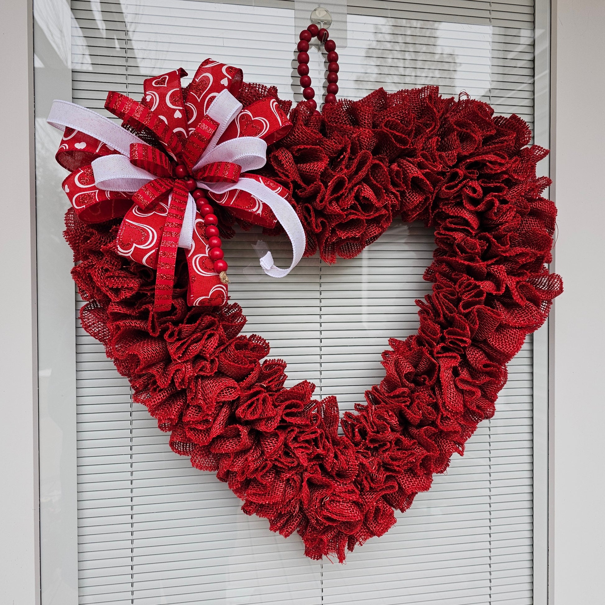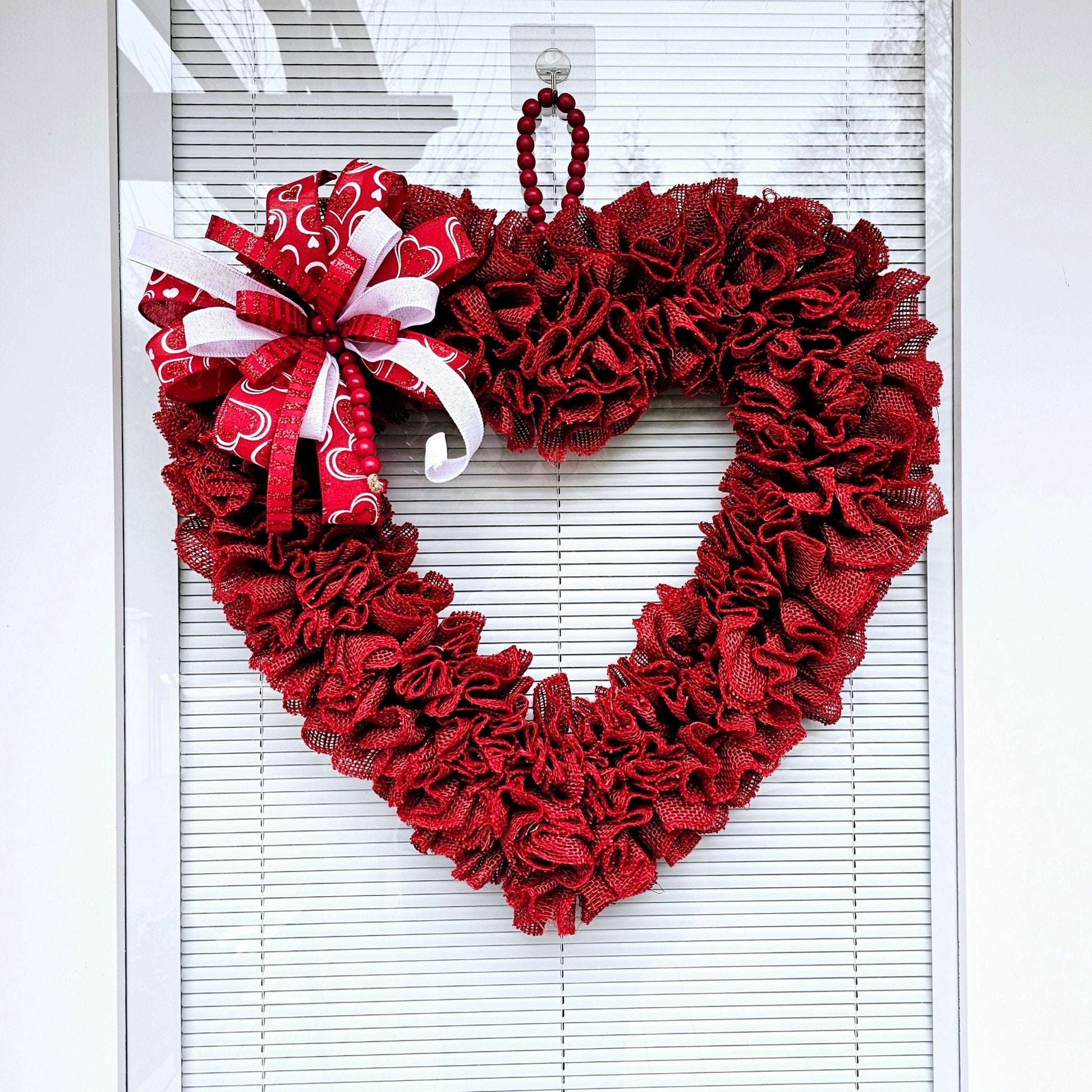 - Handcrafted with 60 feet of premium thick-weave burlap, this heart-shaped wreath is perfect for Valentine’s Day, weddings, anniversaries, or everyday rustic home decor.