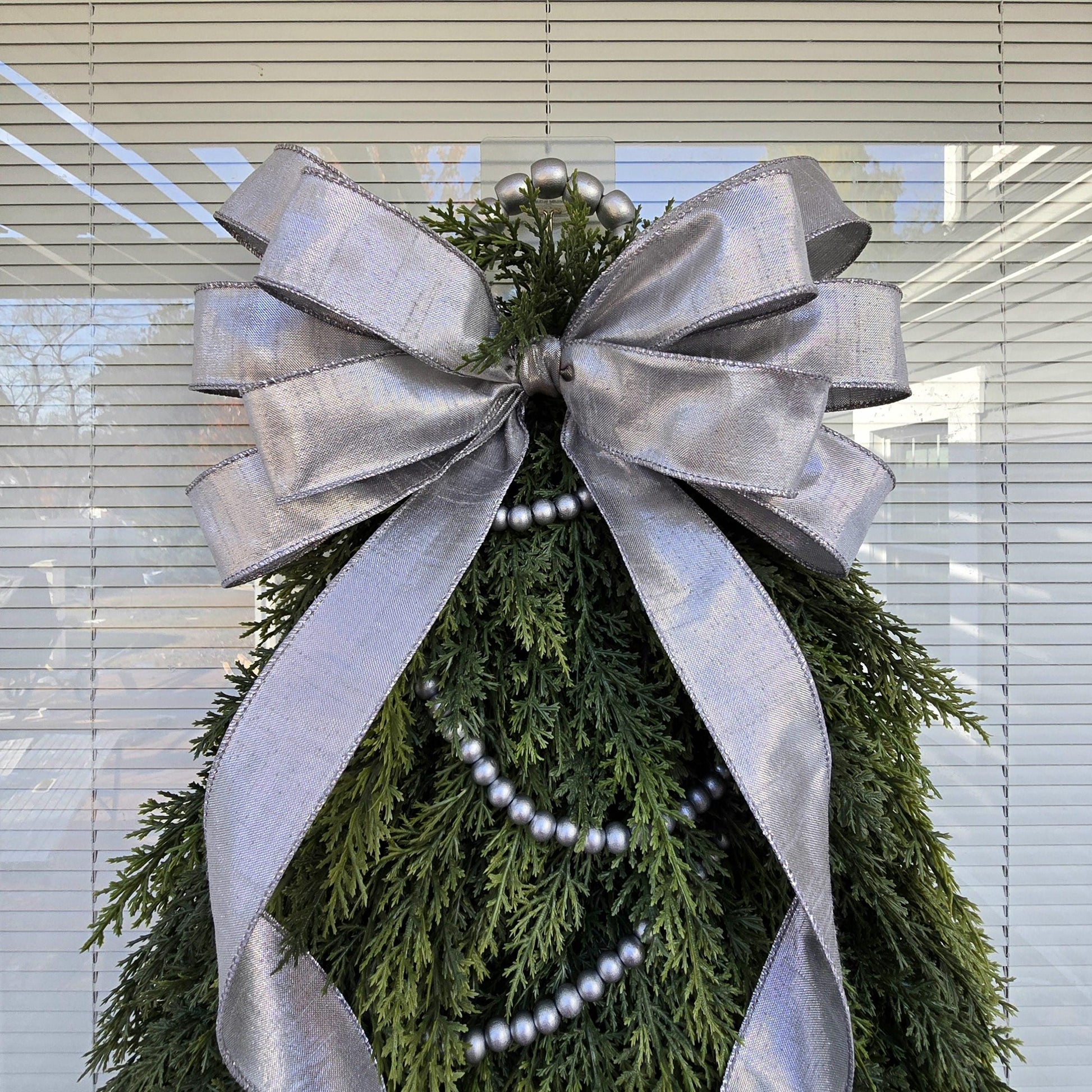 - Luxurious silver dupoini wired bow