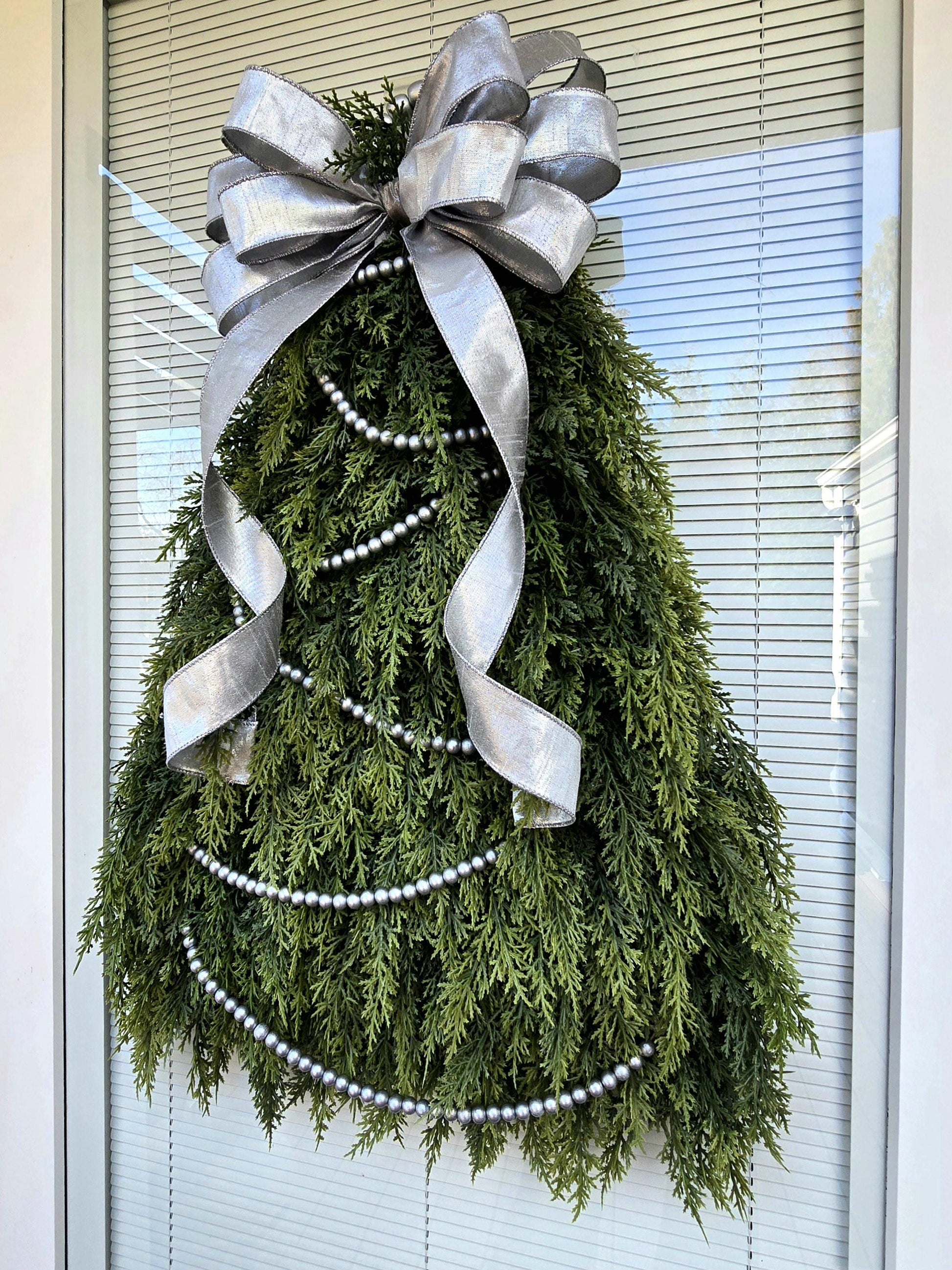 Artificial Christmas Wreath For Front Door Outdoor Winter Decor Holiday Hanger Silver Green Cedar Xmas Tree Swag Home Gift For Her