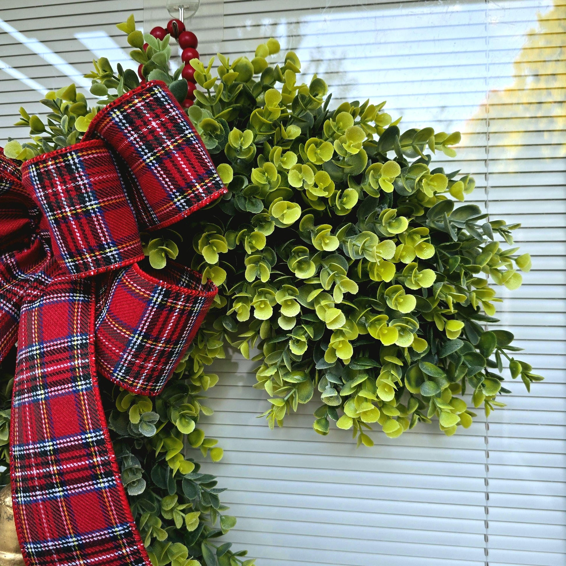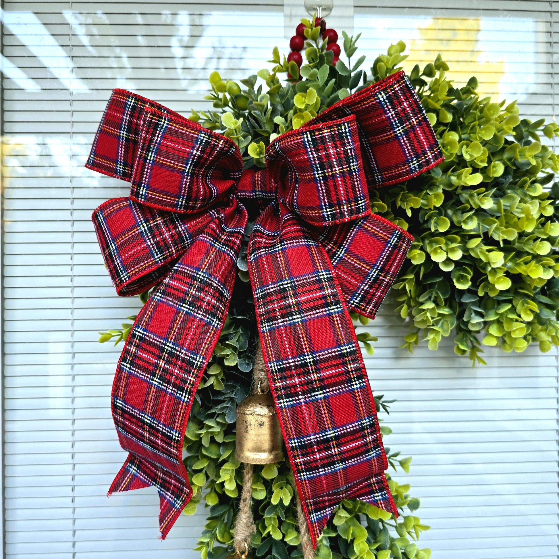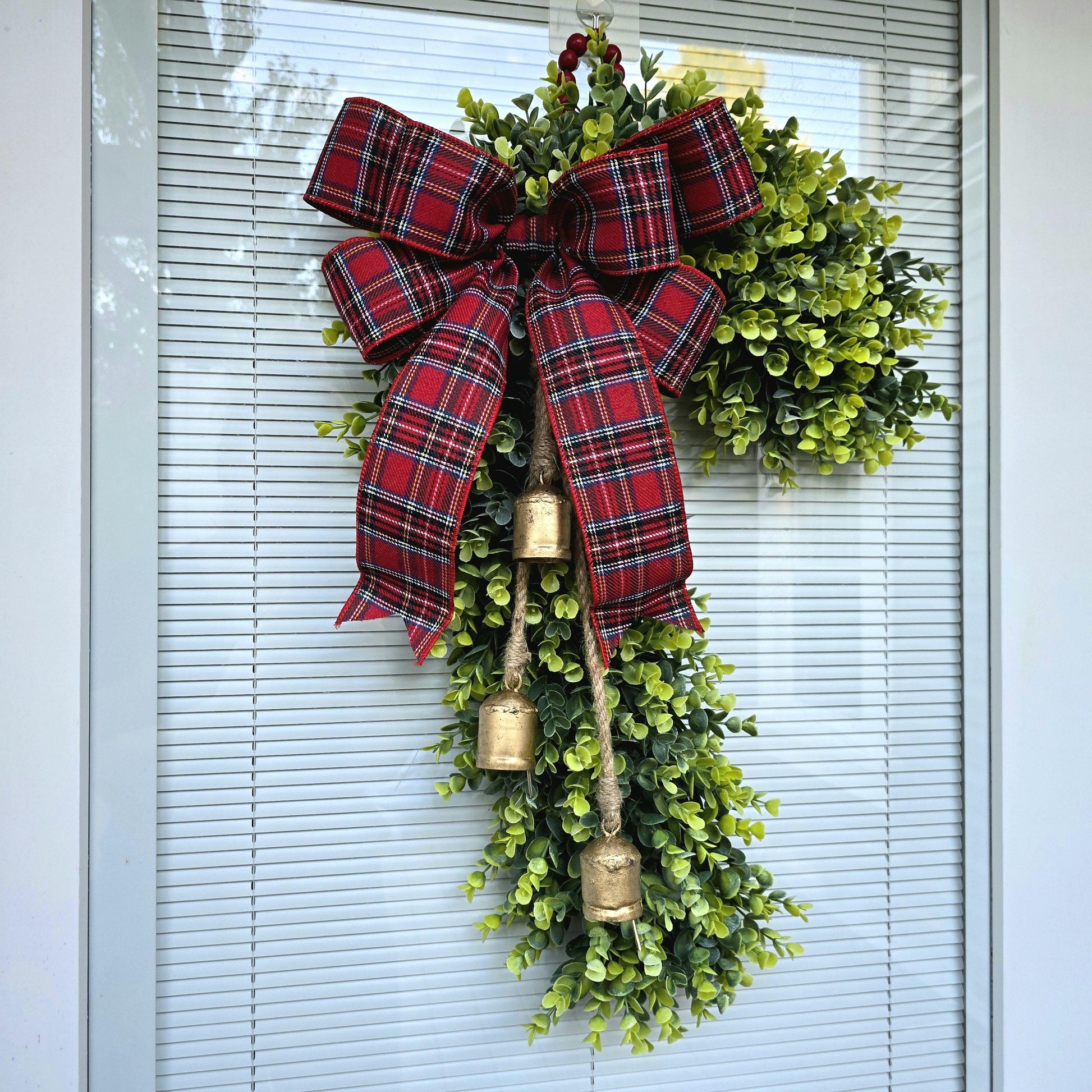š¬ Materials: Realistic faux eucalyptus, gold bells, and plaid bow
