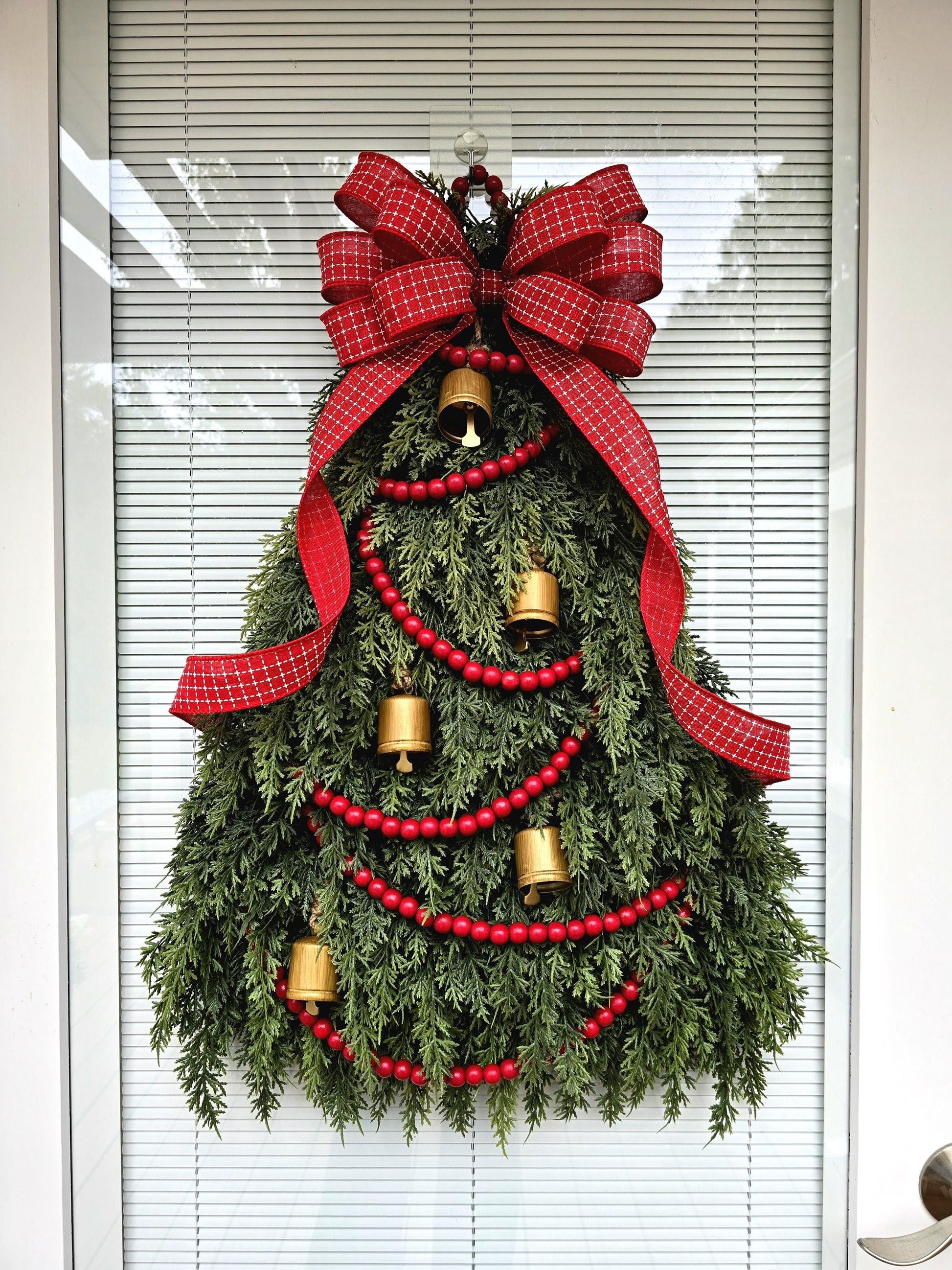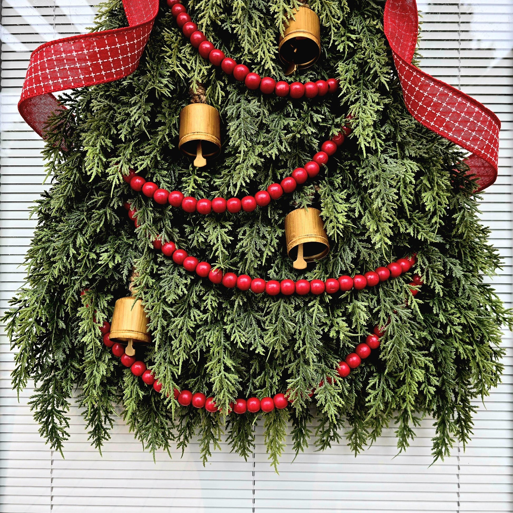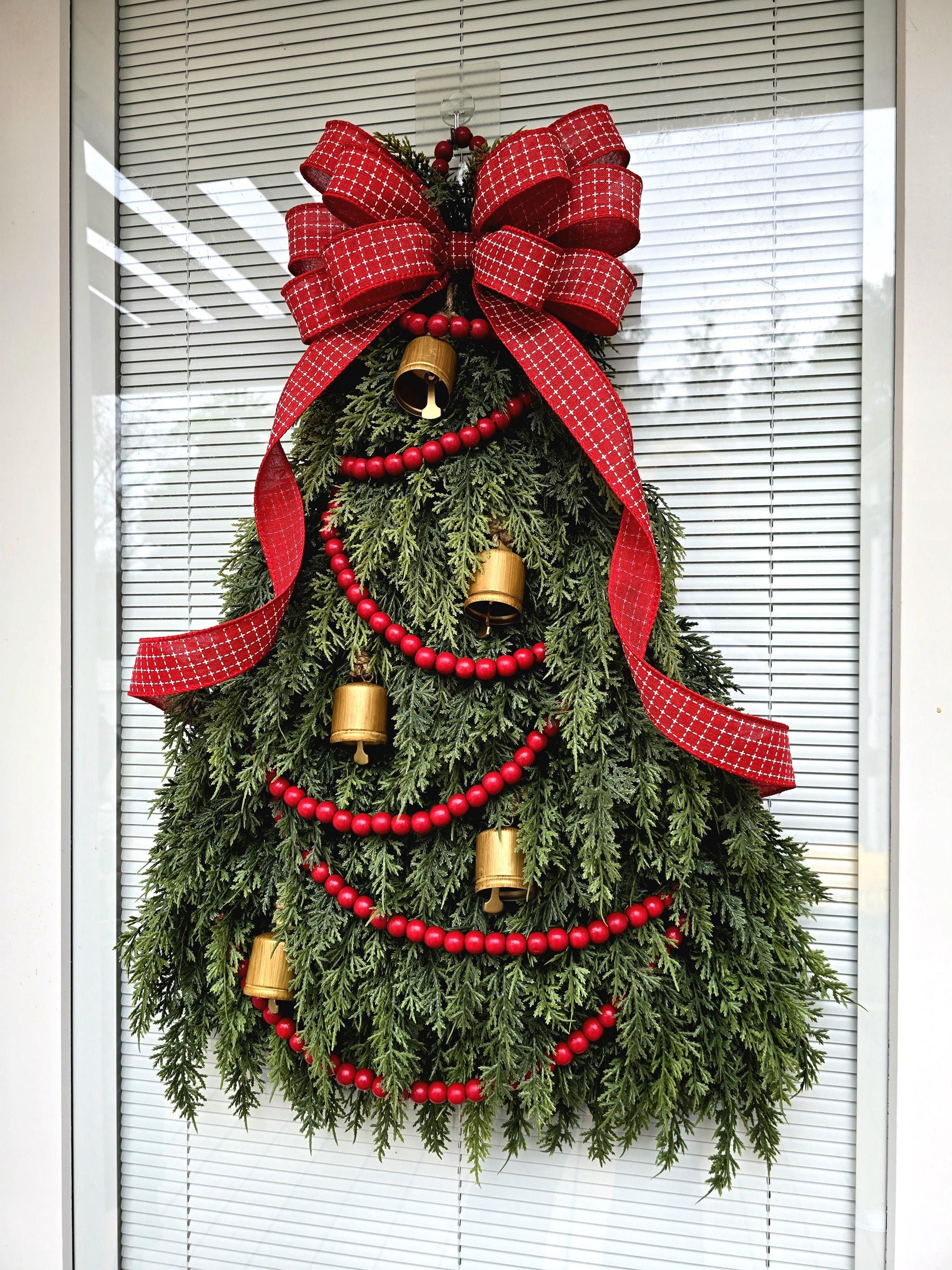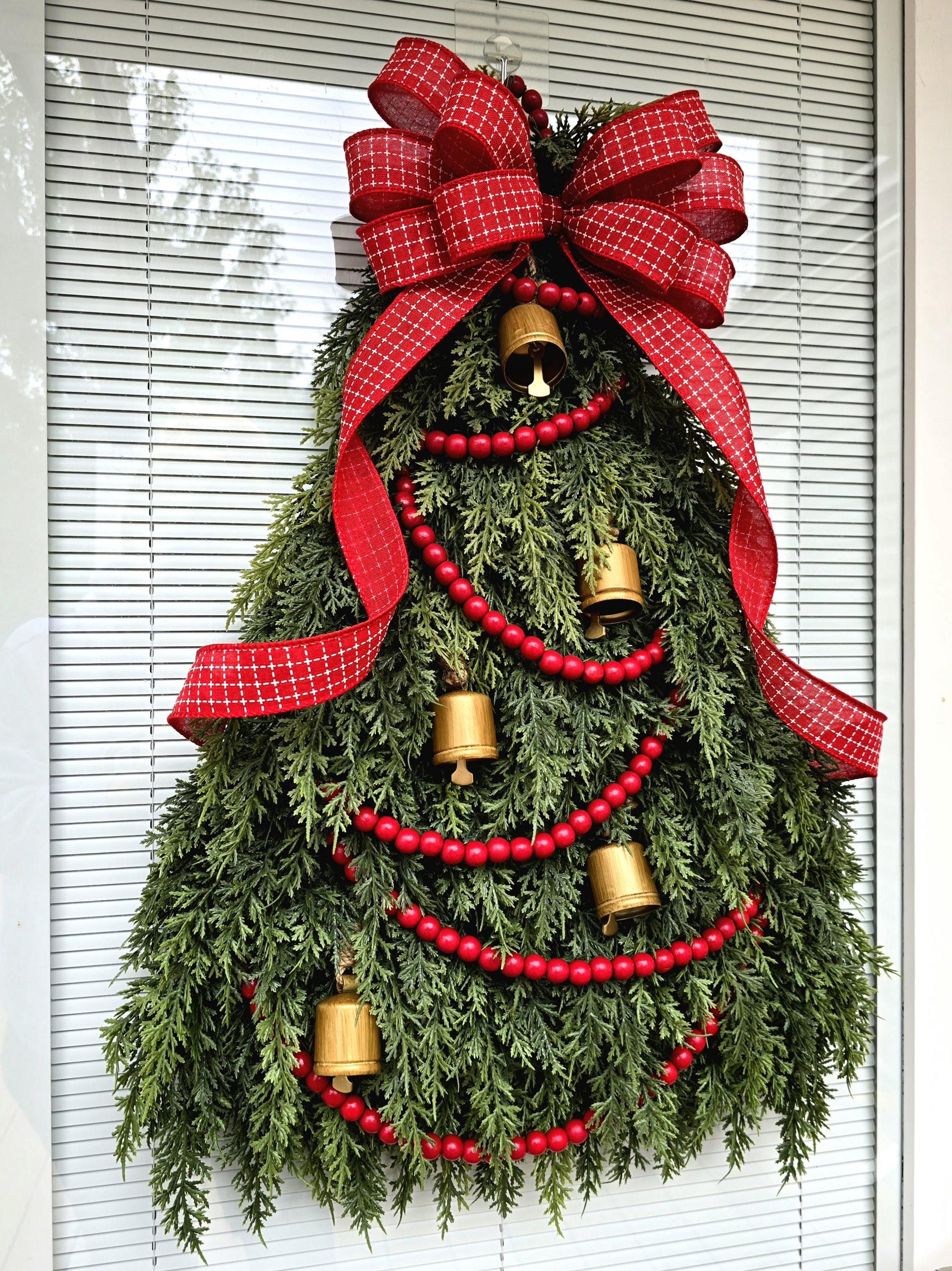 Bring festive charm to your home with this handcrafted Christmas tree wreath, which is ideal for indoor or outdoor use. It's perfect for front doors, porches, or a holiday wall decoration.