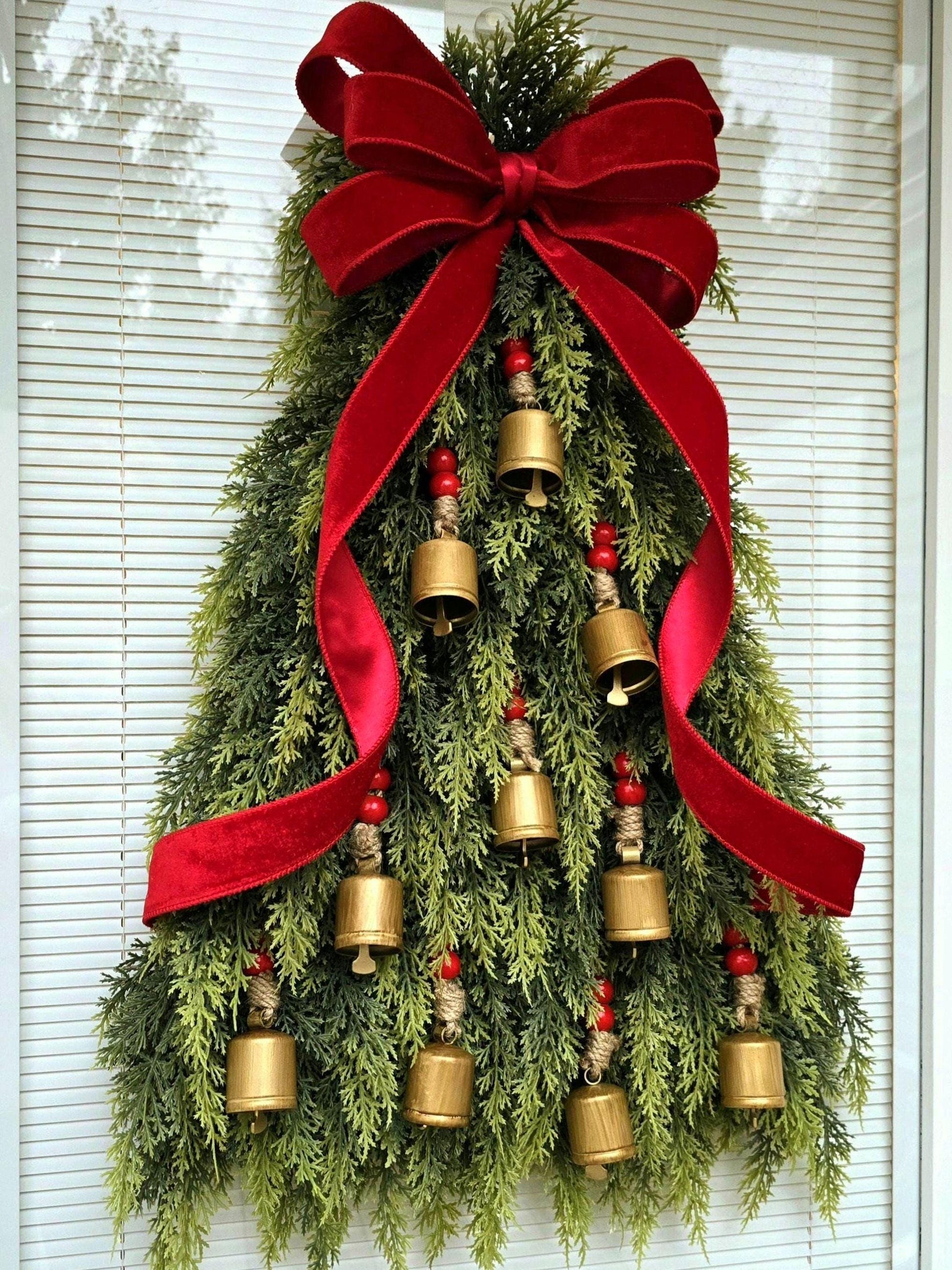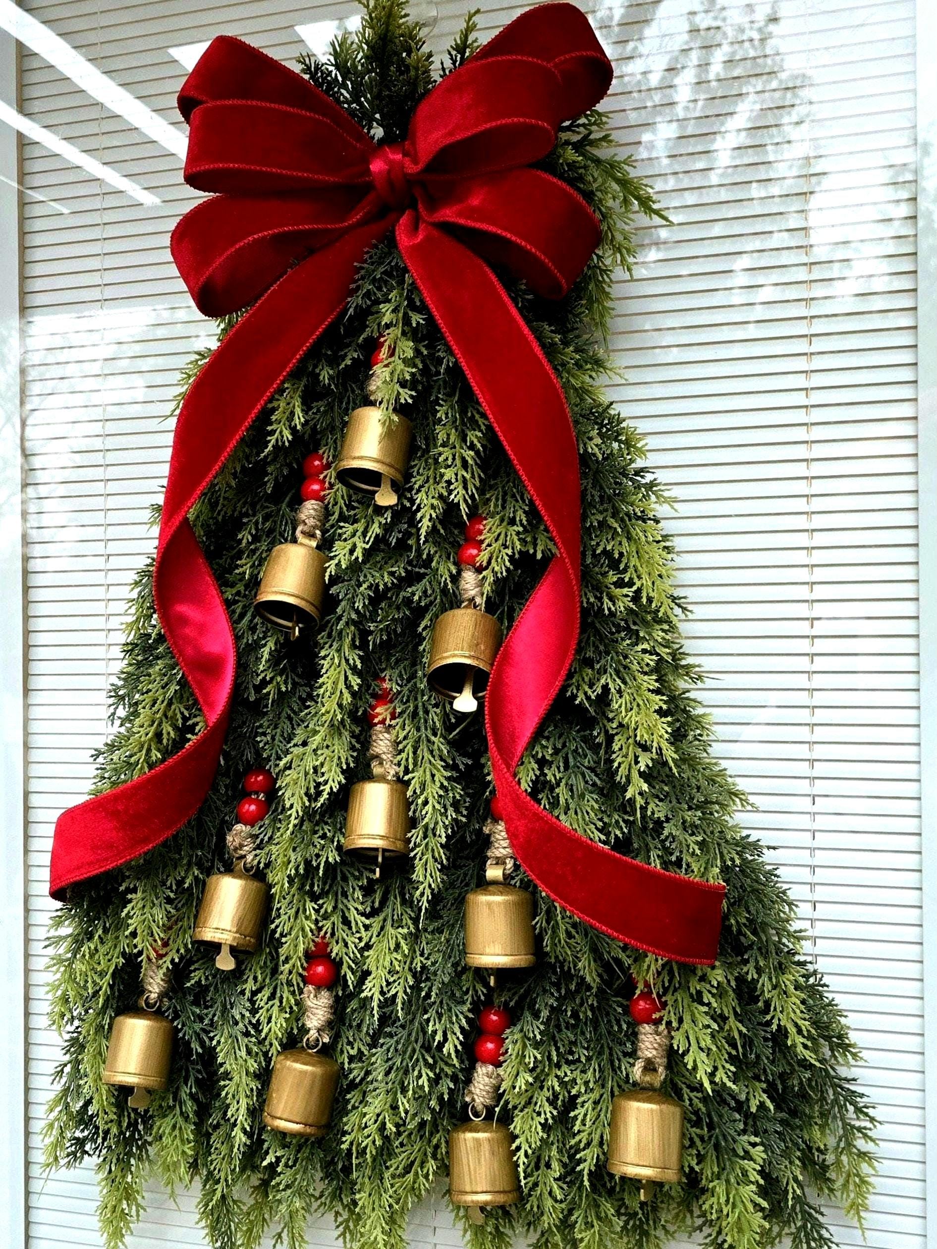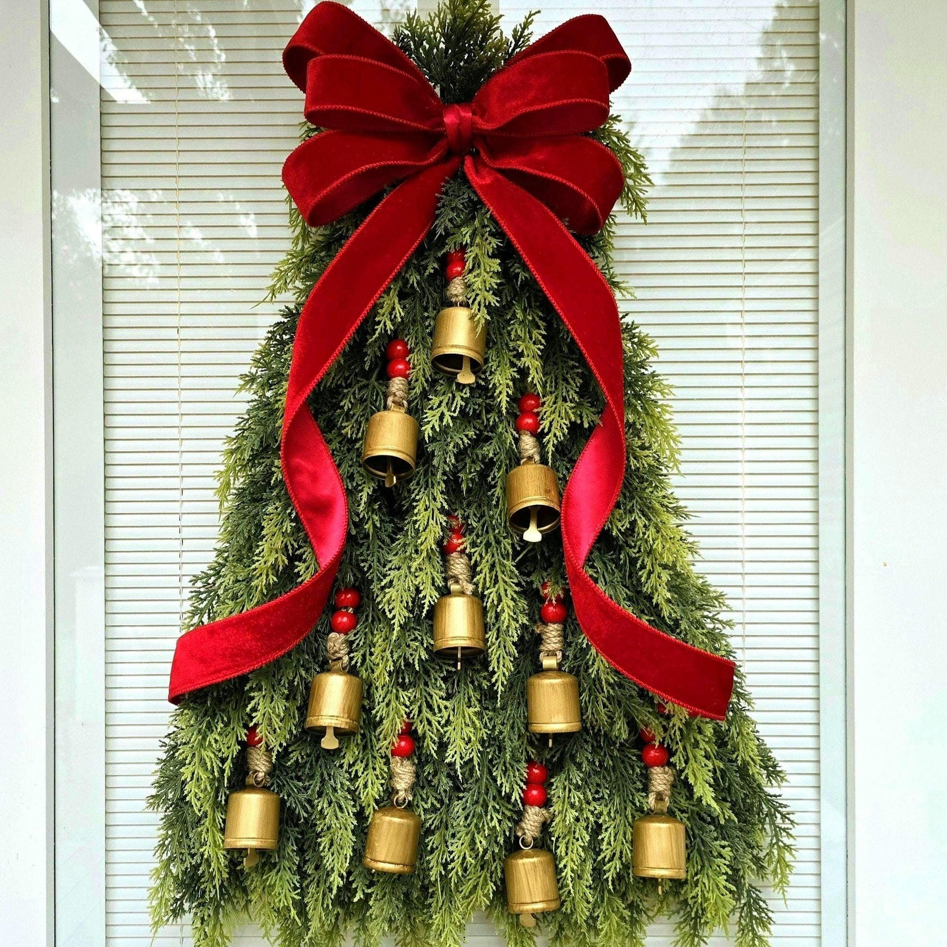 Christmas Wreath For Front Door Double Door Wreaths Outdoor Winter Xmas Cedar Tree & Bell Swag Holiday Decoration Gate Fence Decor Home Gift