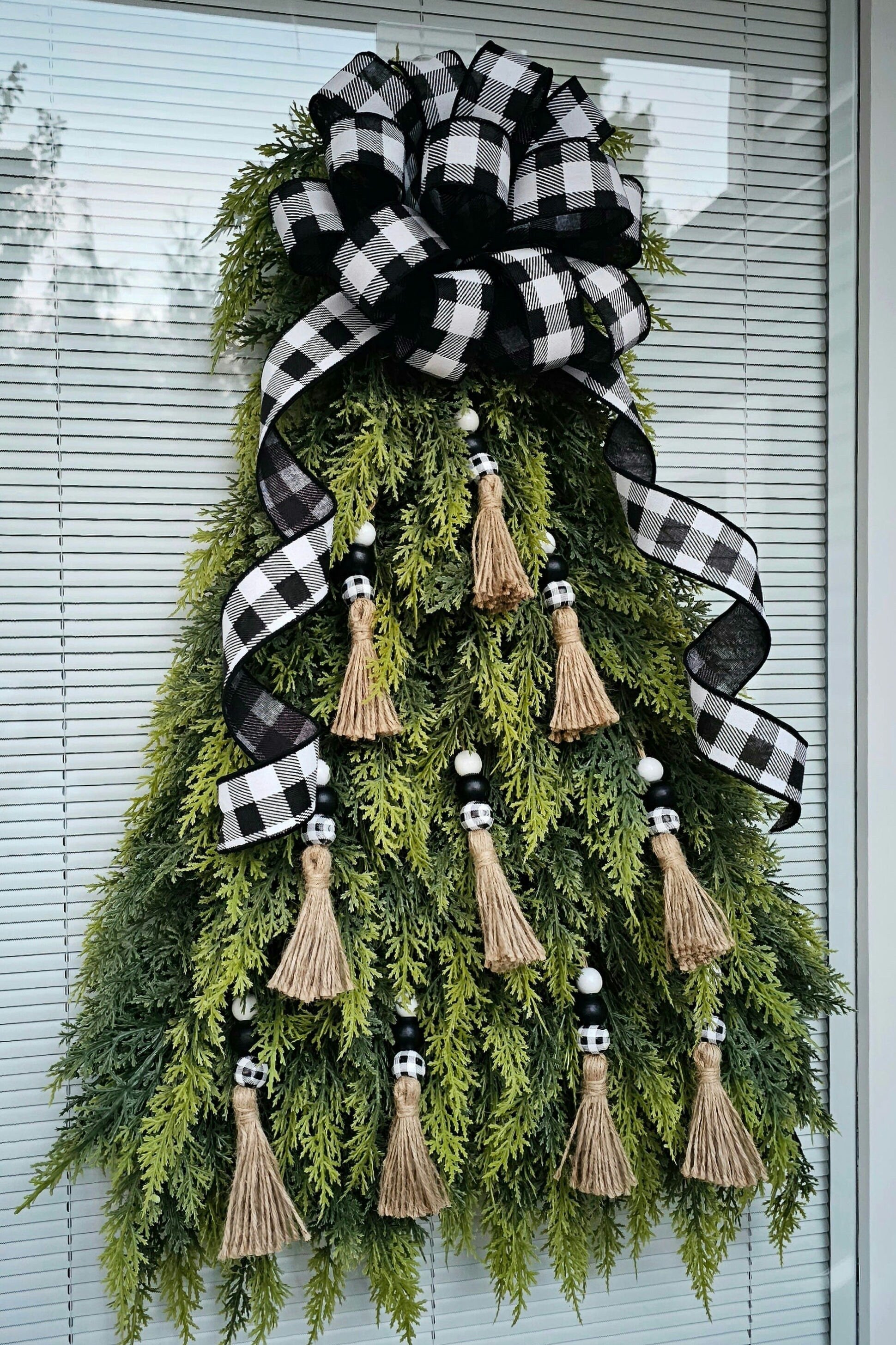 Bring festive charm to your home with this handcrafted Christmas tree wreath, which is ideal for indoor or outdoor use. It's perfect for front doors, porches, or a holiday wall decoration.