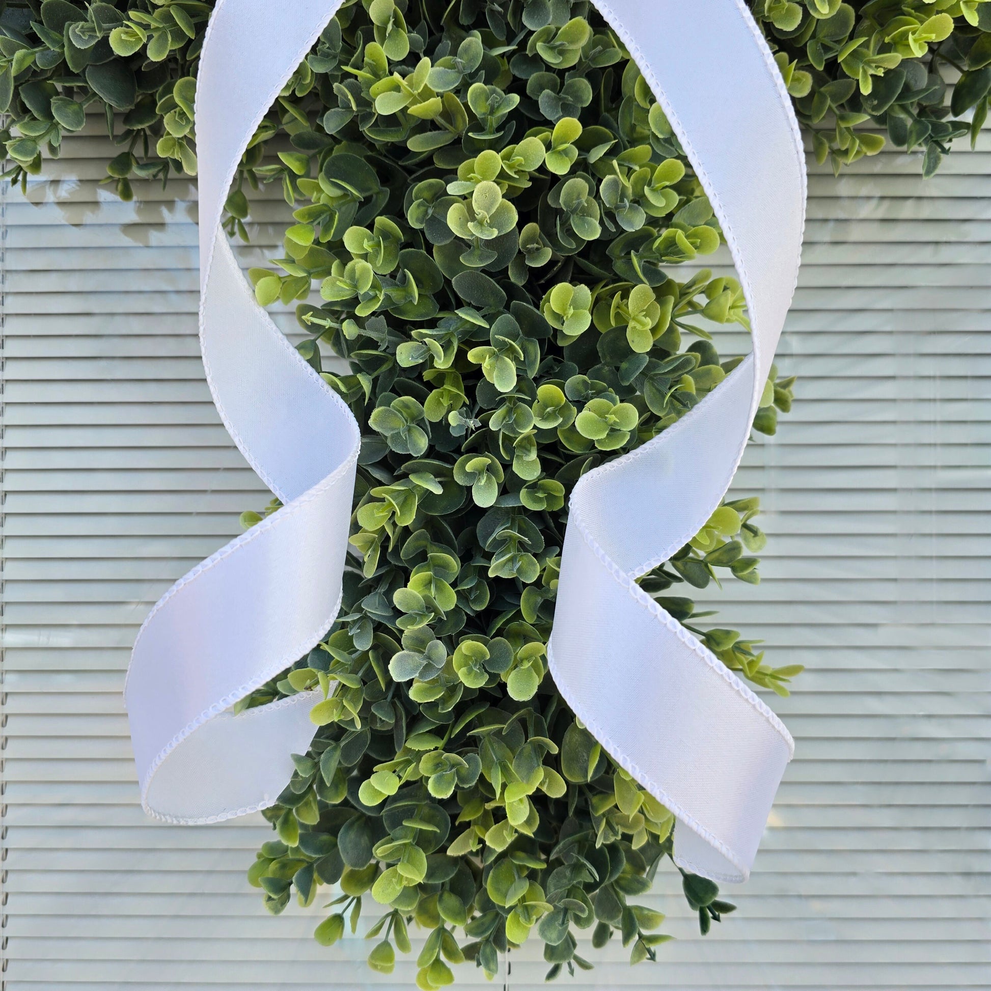 Eucalyptus Cross Wreath with White Satin Wired Interchangeable Bow - Limited Quantity Available