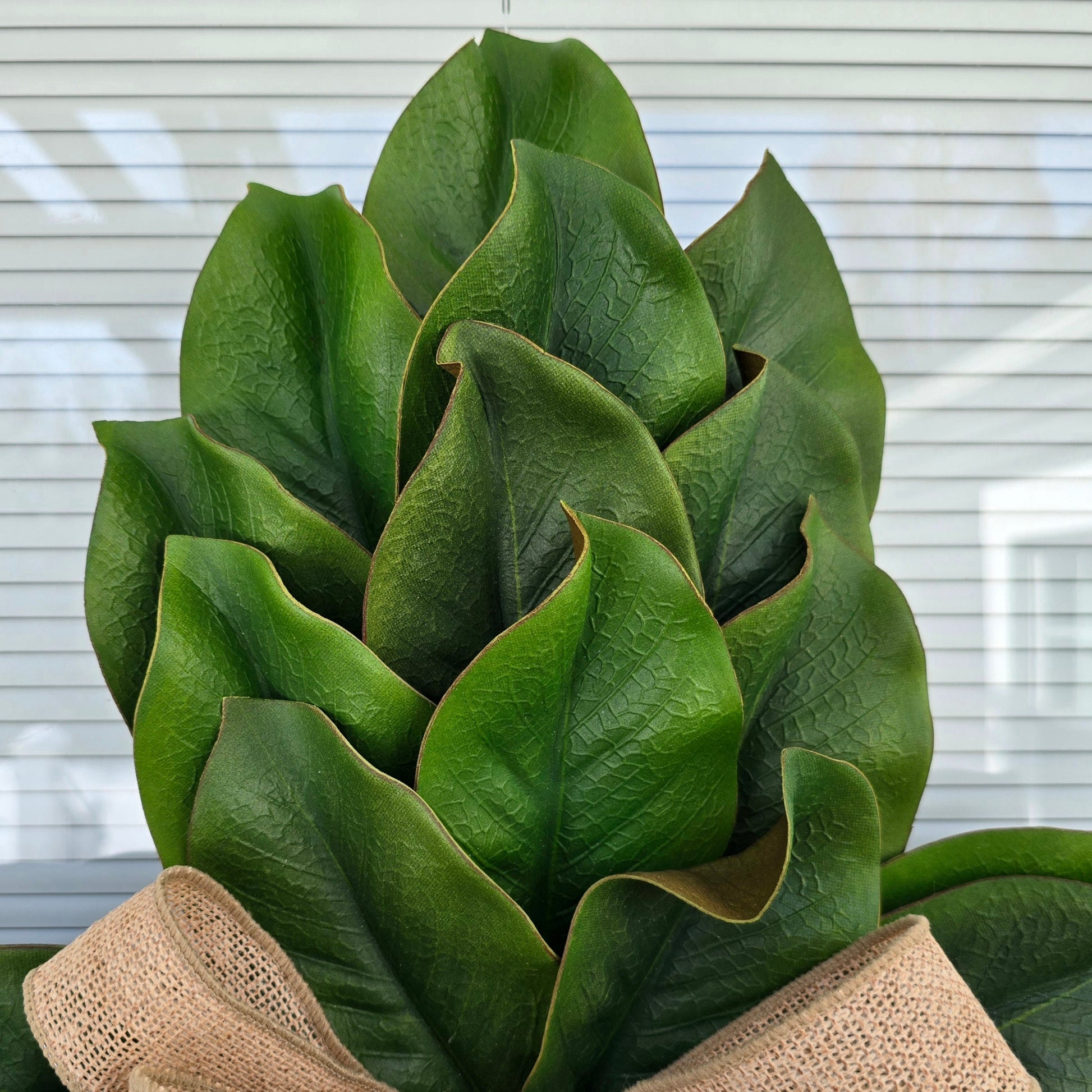 High-Quality Craftsmanship: This beautiful, robust cross wreath is meticulously crafted with high-quality artificial magnolia leaves and a lovely wired interchangeable bow.