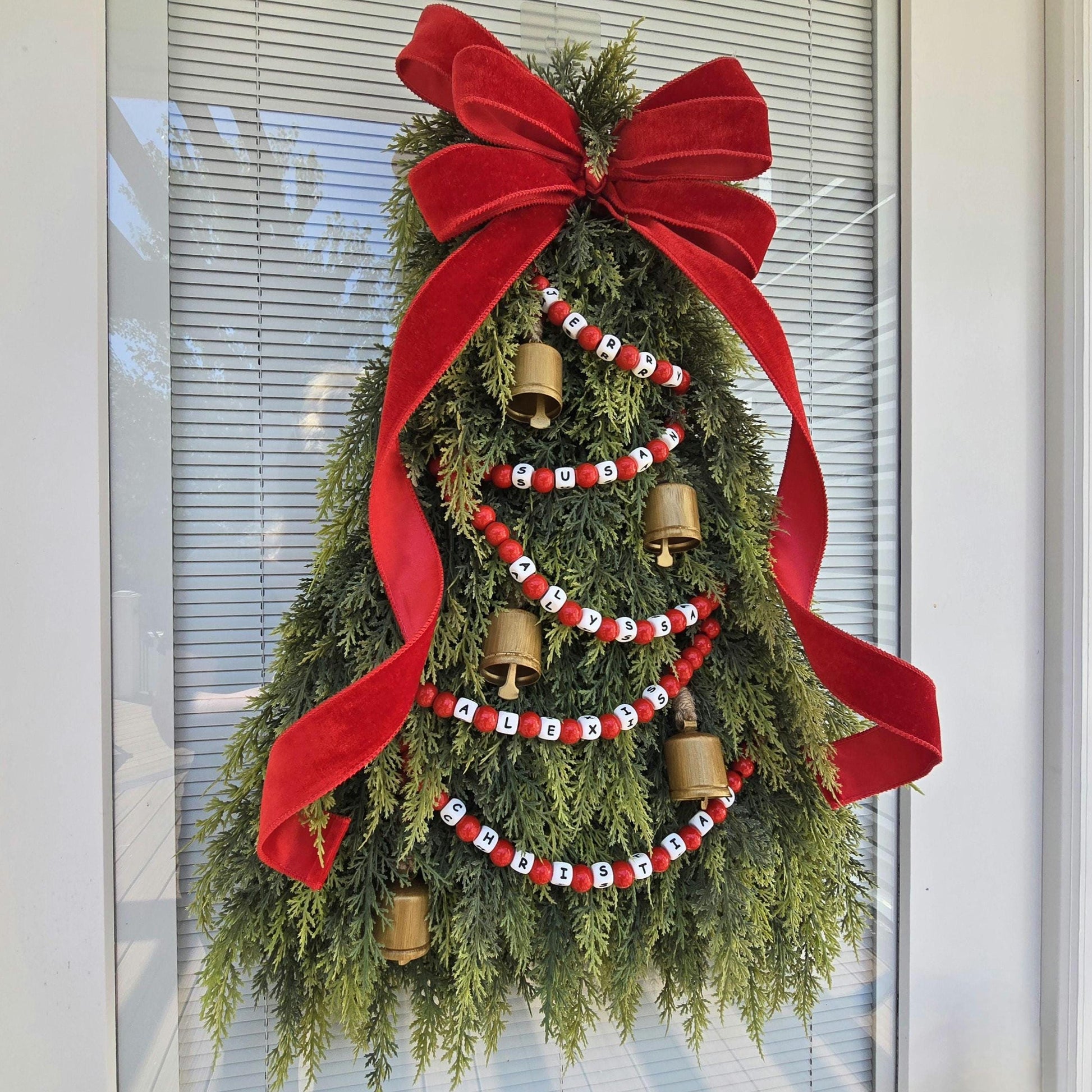 Transform your front door or wall with this unique, handcrafted wreath that brings a natural and festive touch to your home. Adorned with a custom beaded garland featuring your family's names or a special holiday message, it's the perfect way to make your holiday decor truly special.
