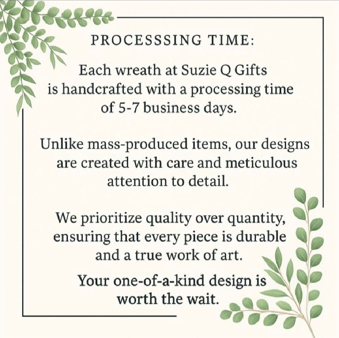 - Processing Time: Due to the handcrafted nature of this item, please allow 5-7 days for crafting before shipping. Unlike mass-produced wreaths, each design is a unique work of art, focusing on quality over quantity.