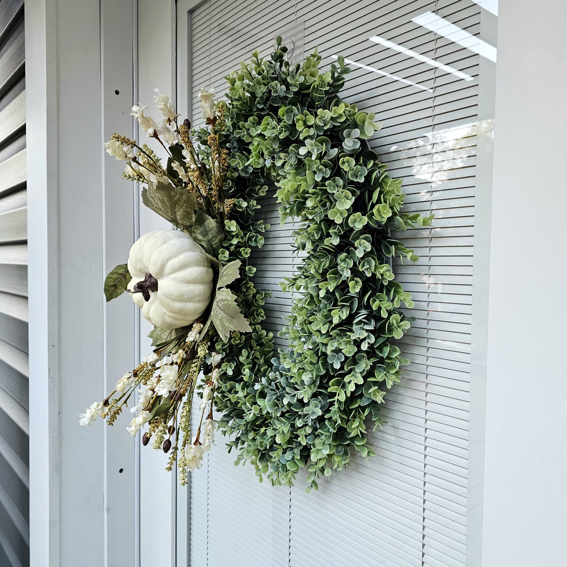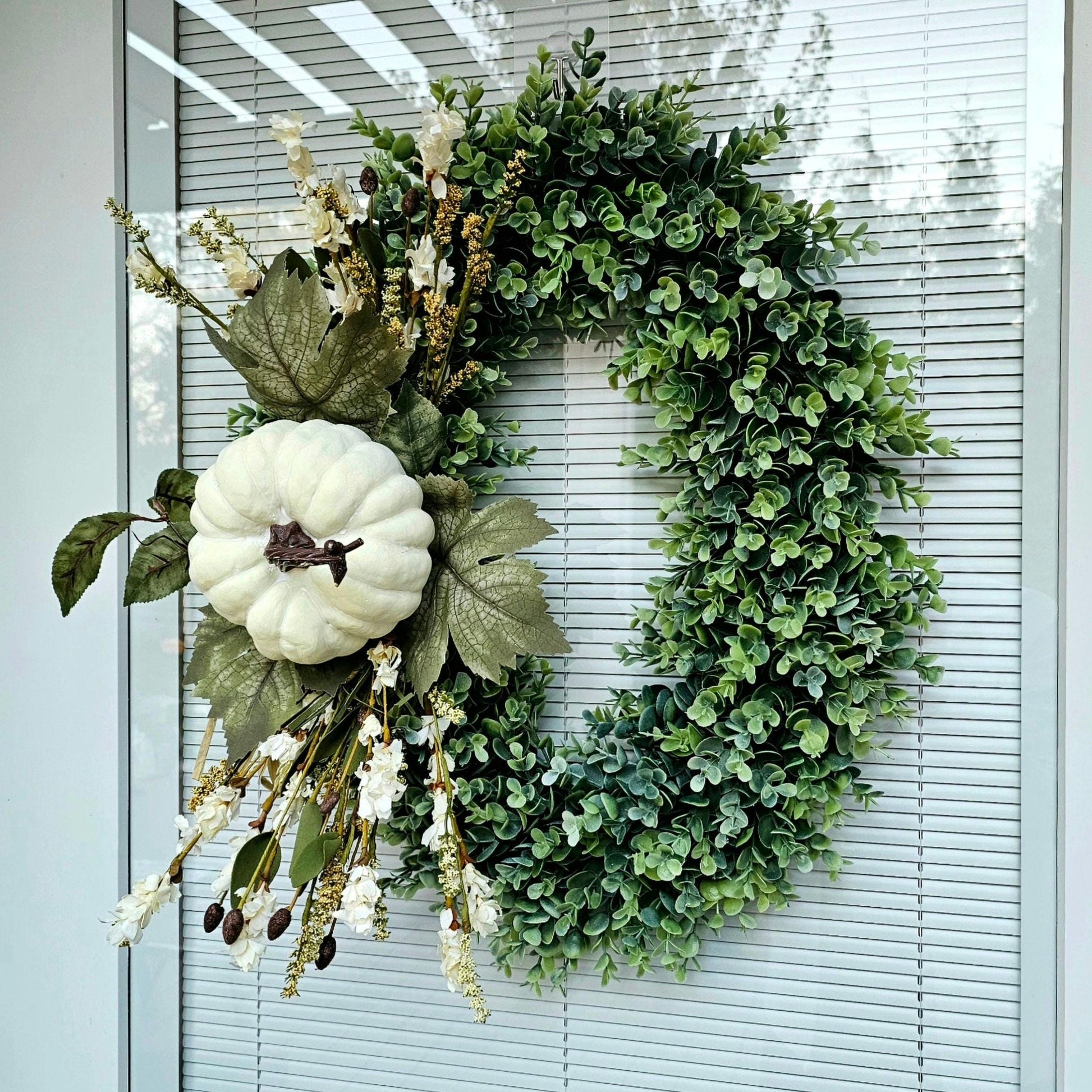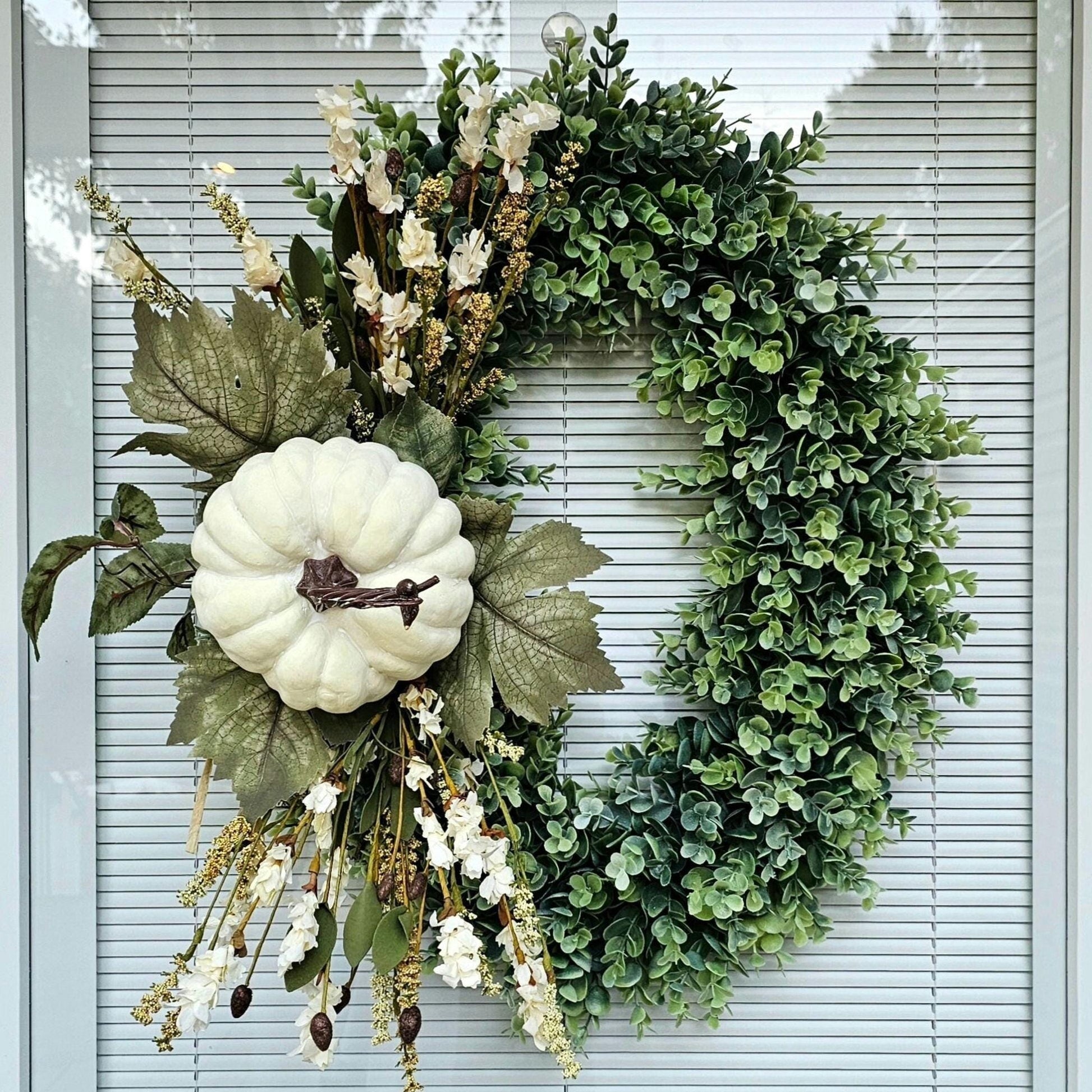 Fall Wreath for Front Door, Double Door Wreath, Thanksgiving Oval Swag, Autumn Harvest Porch Decor, Cream Pumpkin Wall Decoration, Home Gift