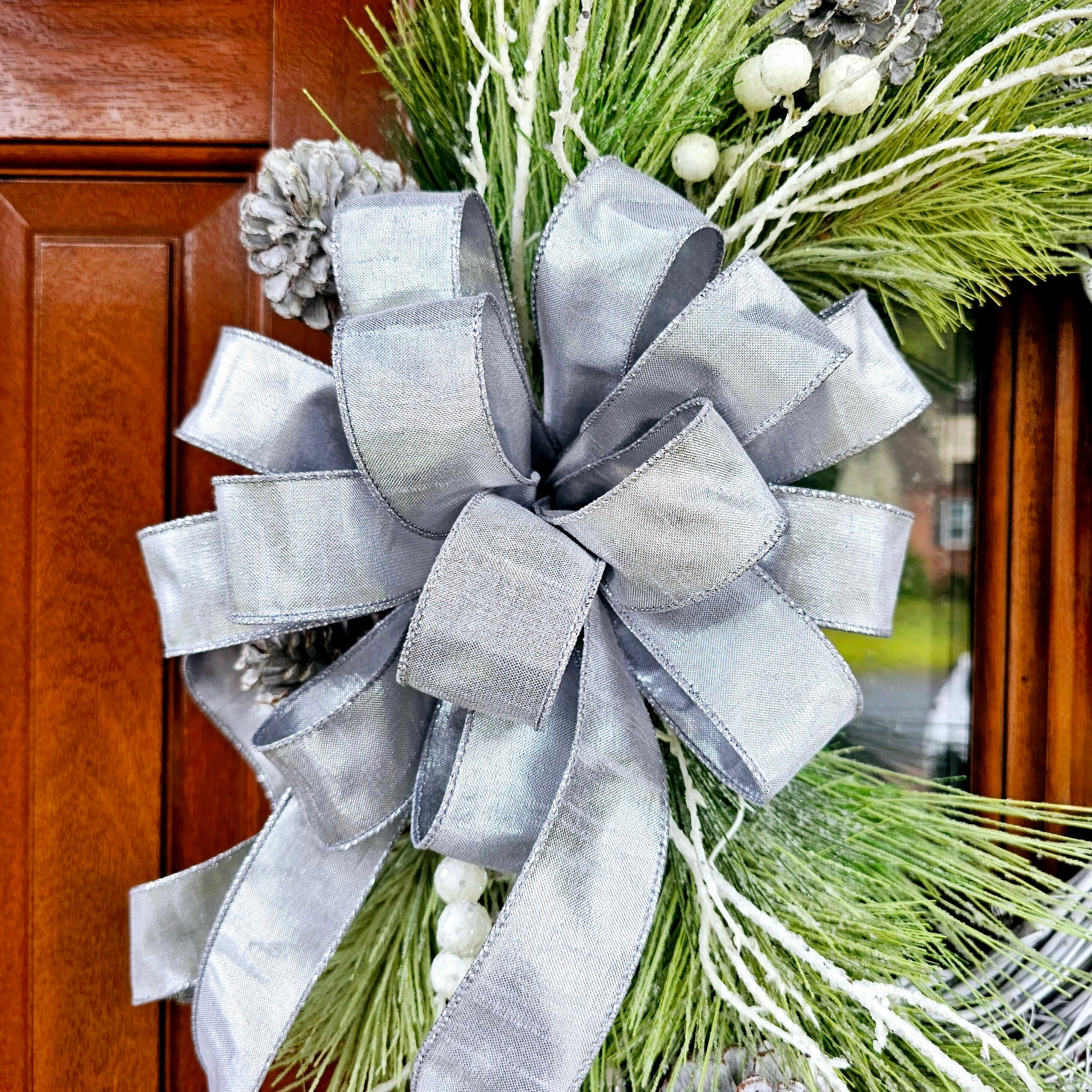 Handcrafted White & Silver Christmas Wreath For Front Door, Winter Porch Decor, Holiday Seasonal Home Decoration, Xmas Housewarming Gift