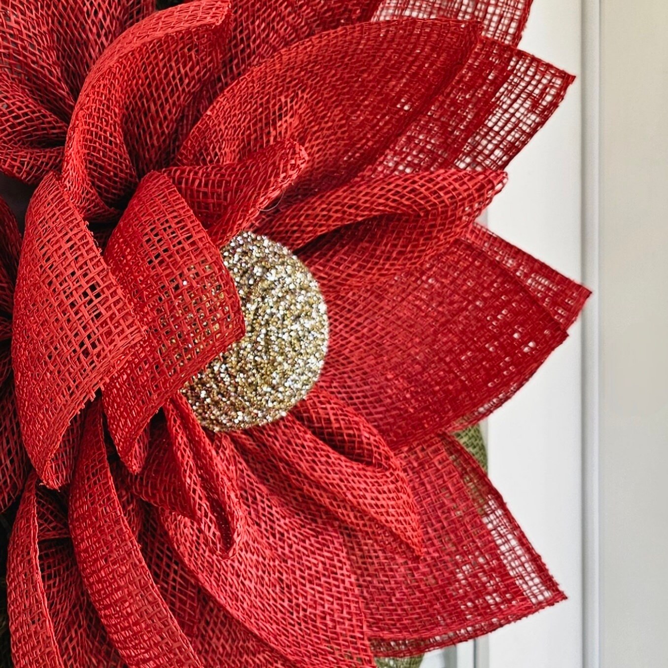 Magnolia Wreath For Front Door, Double Door Wreaths, Outdoor Spring Summer Fall Winter Decor, Christmas Red Burlap Flower, Bling Home Gifts