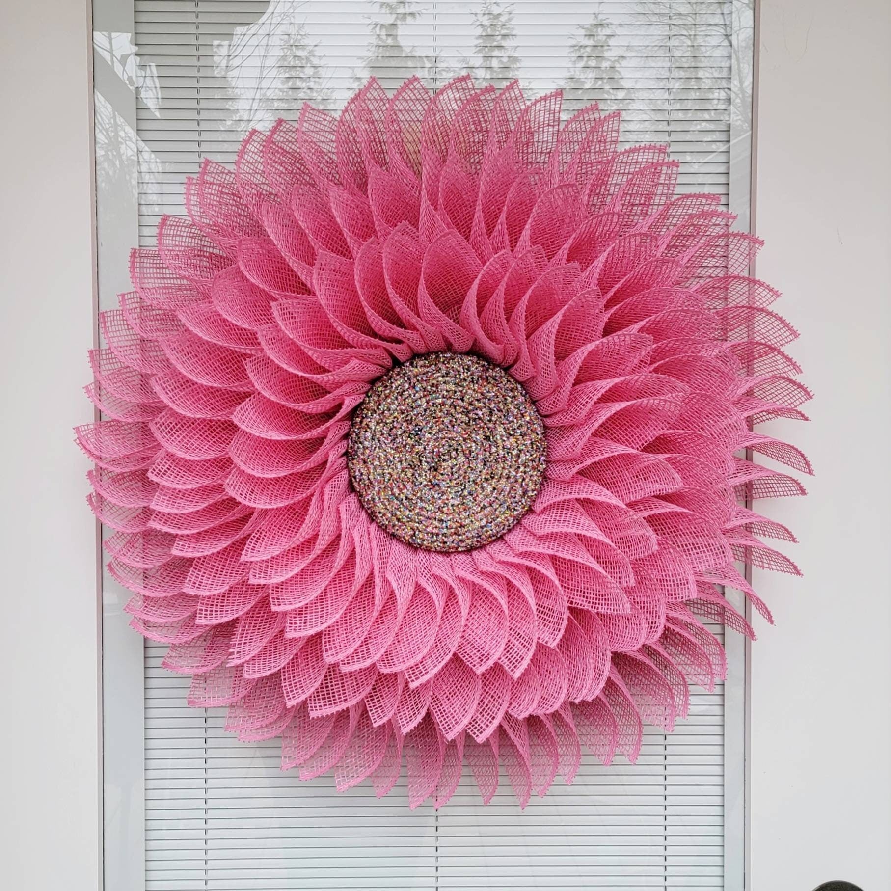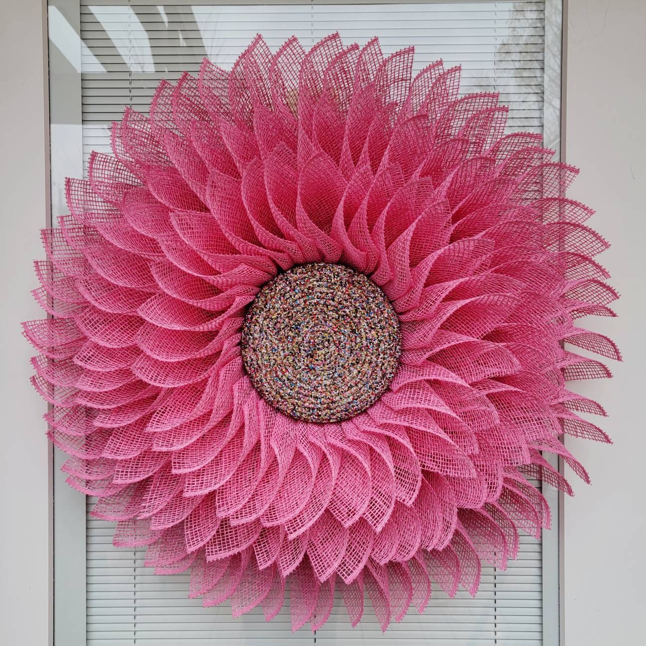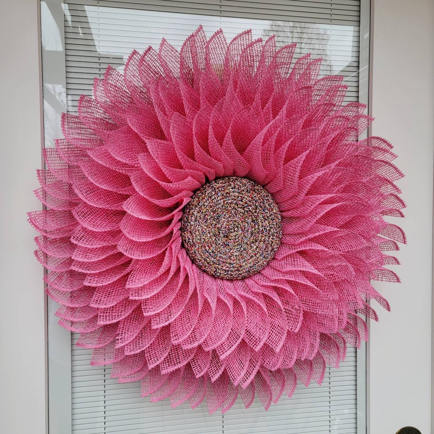 Pink Sunflower Wreath, Front & Double Door Wreaths, Spring Summer Seasonal Porch Decor, Home Decoration, Burlap Flower, Bling Gift idea