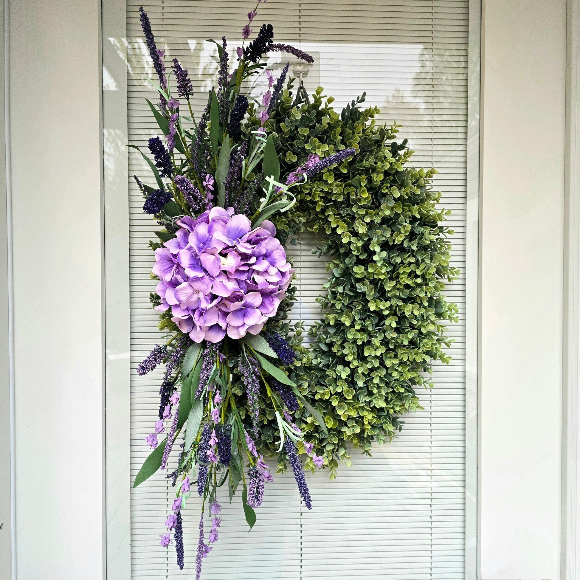 SPRING SUMMER WREATH For Front Doors Double Door Wreaths Outdoor Purple Hydrangea Lavender Eucalyptus Greenery Oval Large Home Decor Gifts