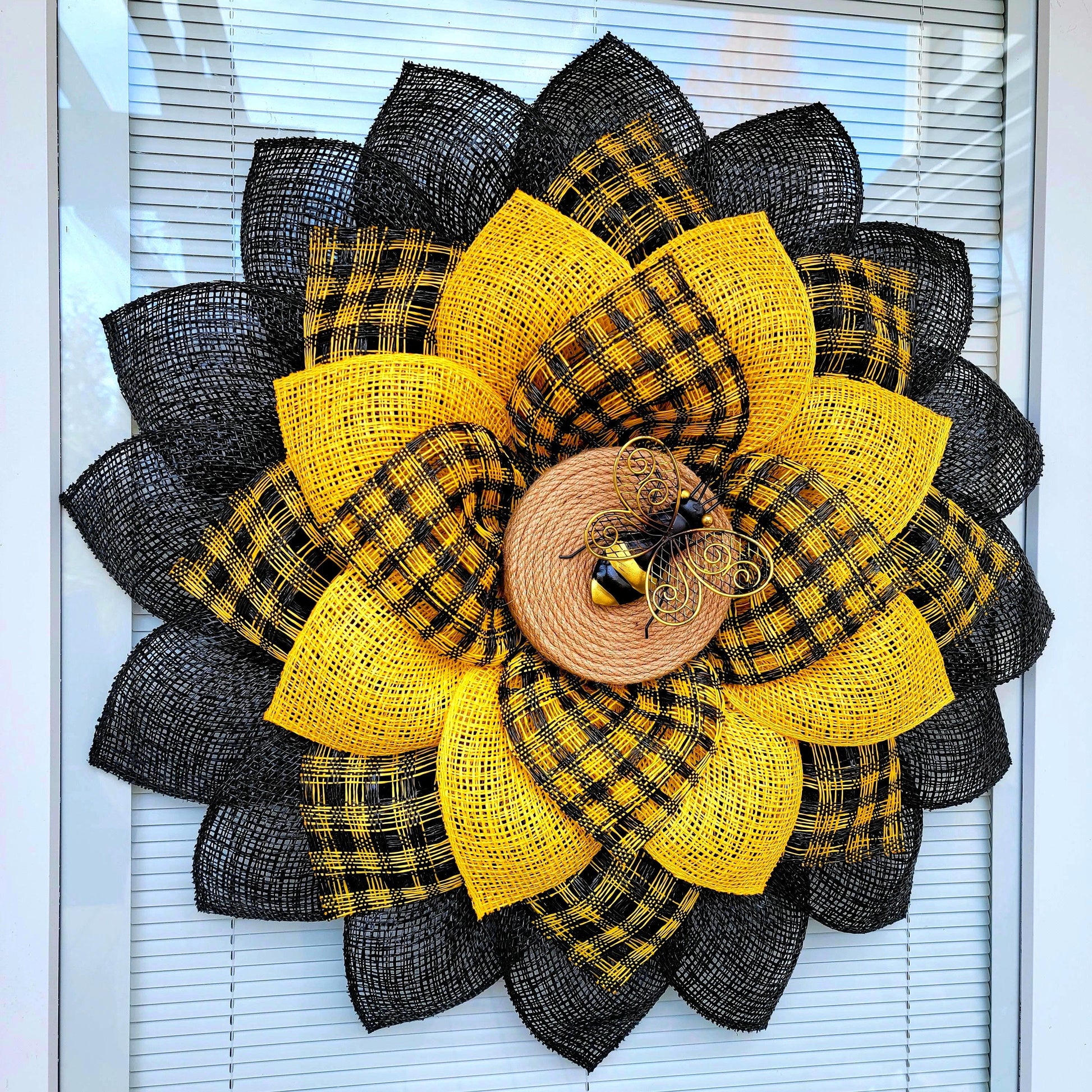 Spring Sunflower Bumble Bee Wreath for Front Door