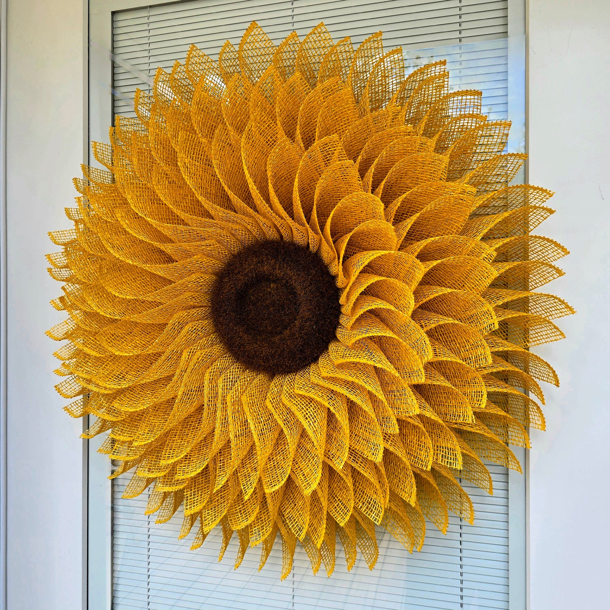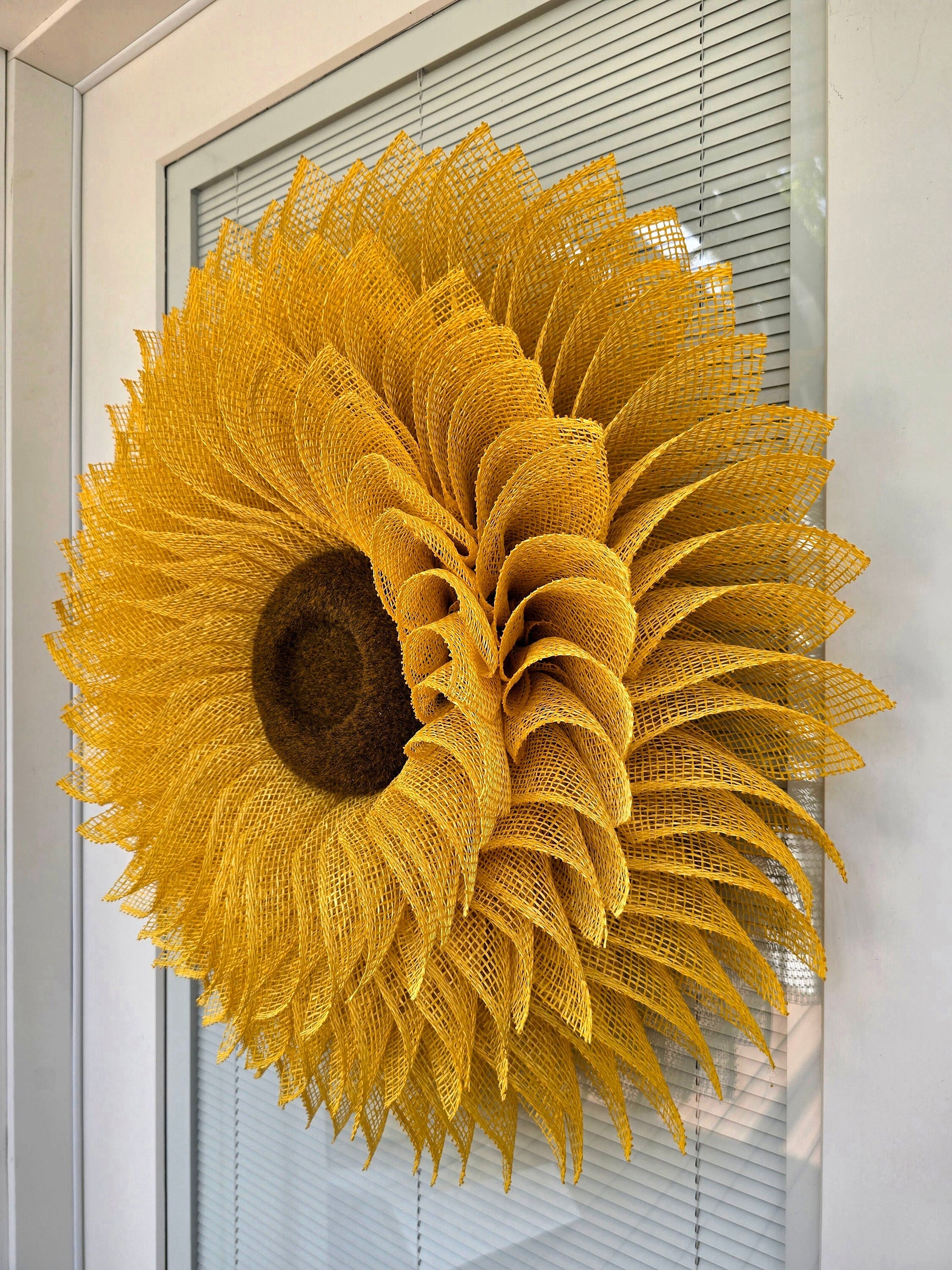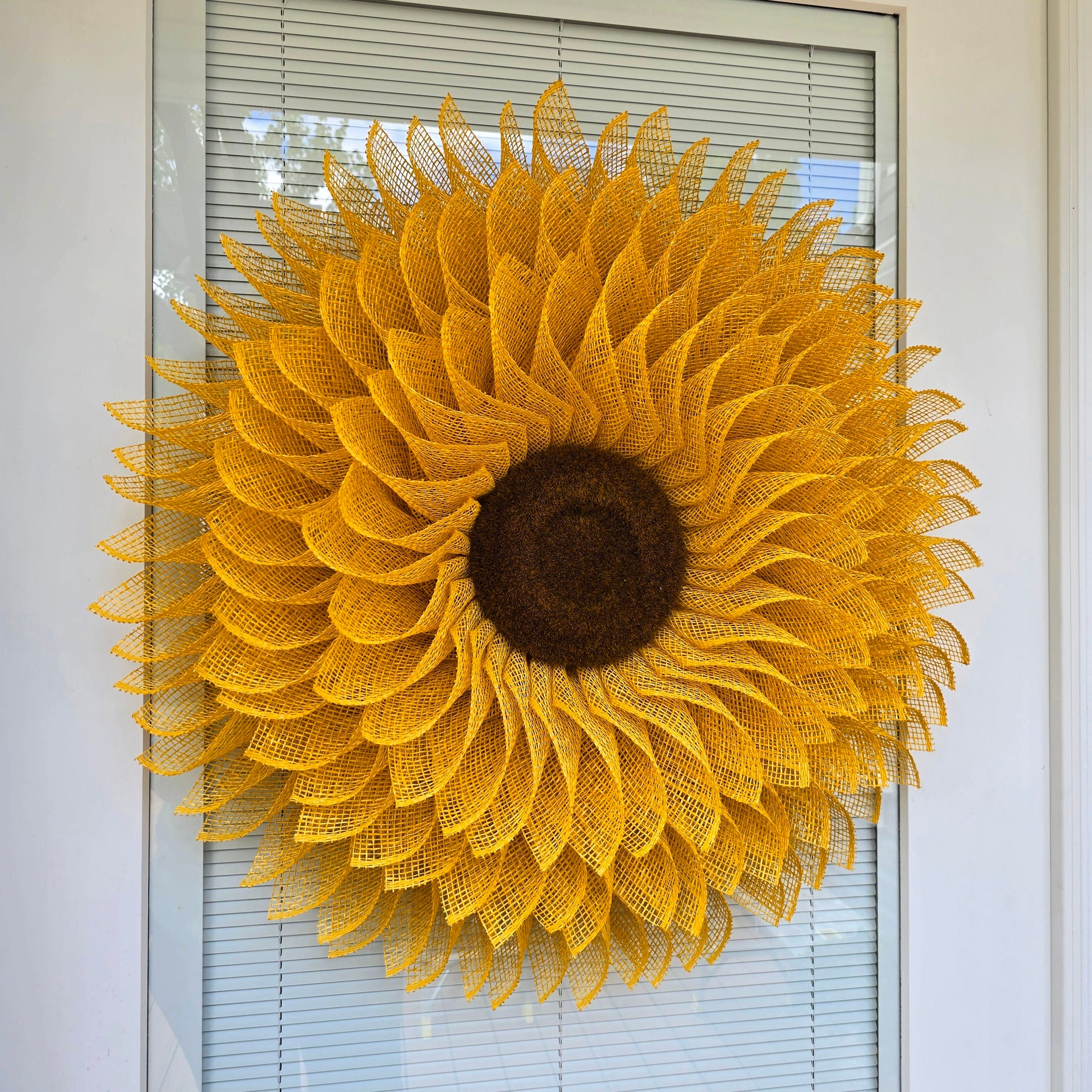 Handcrafted Indoor/Outdoor Burlap Sunflower Wreath - Perfect for your front door, double doors, porch decor, or as a hanging wall decoration.