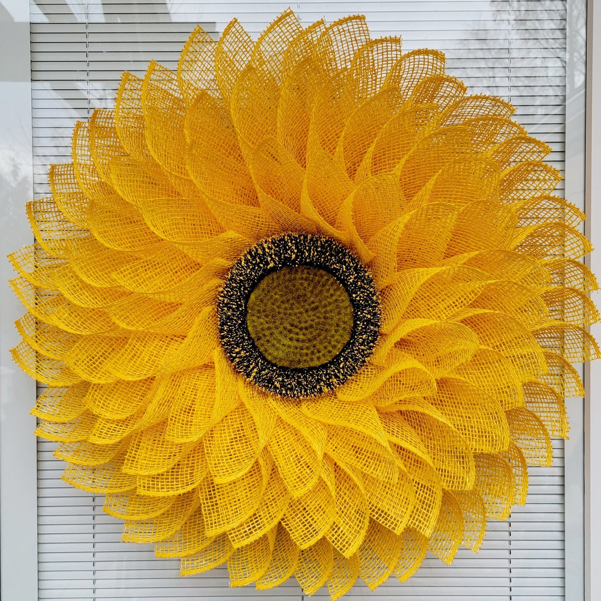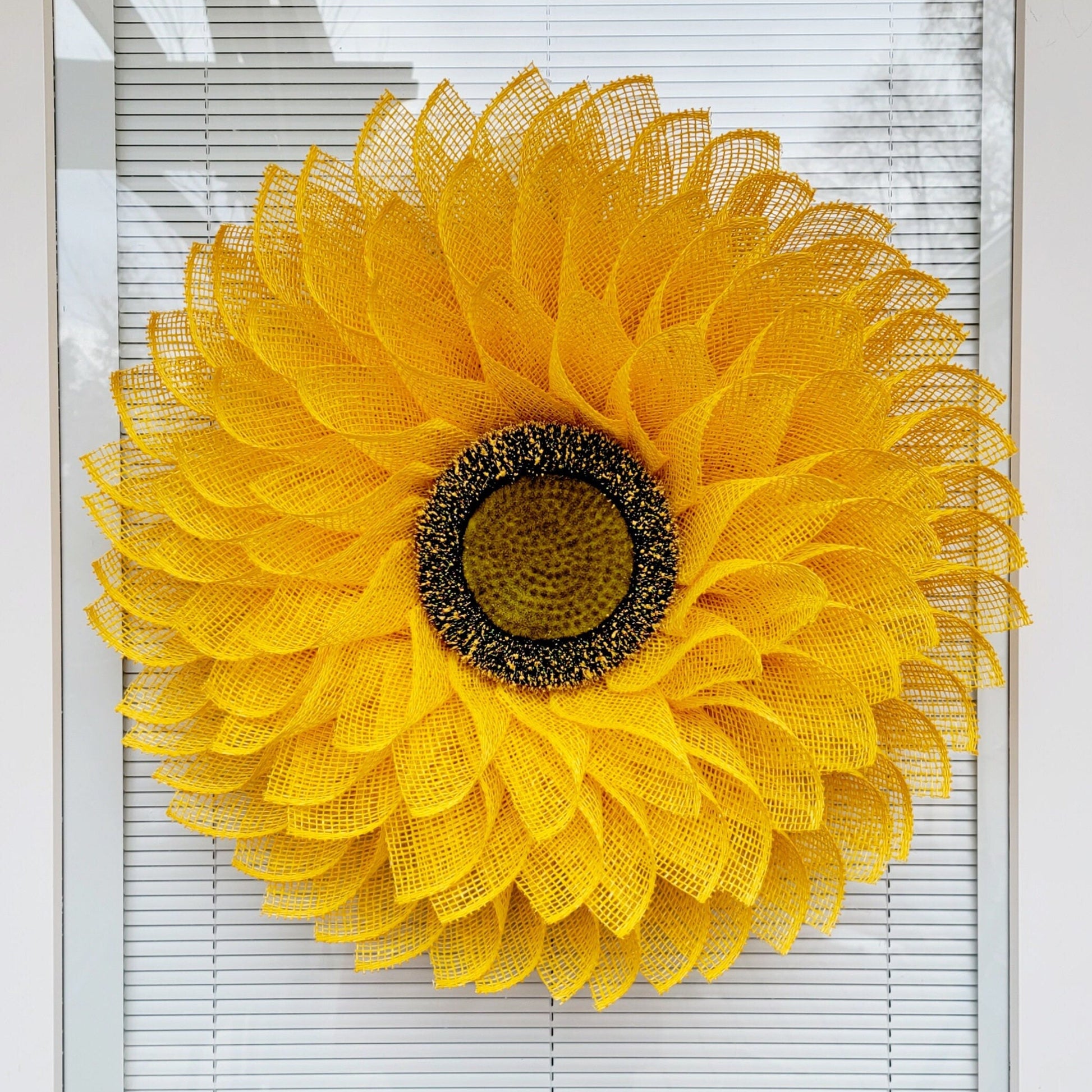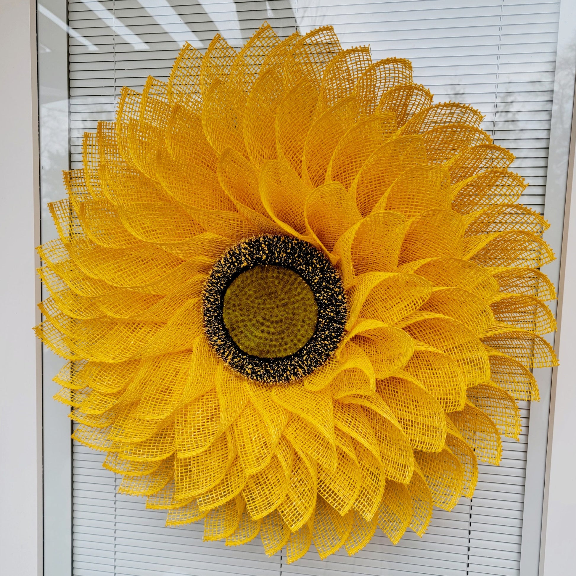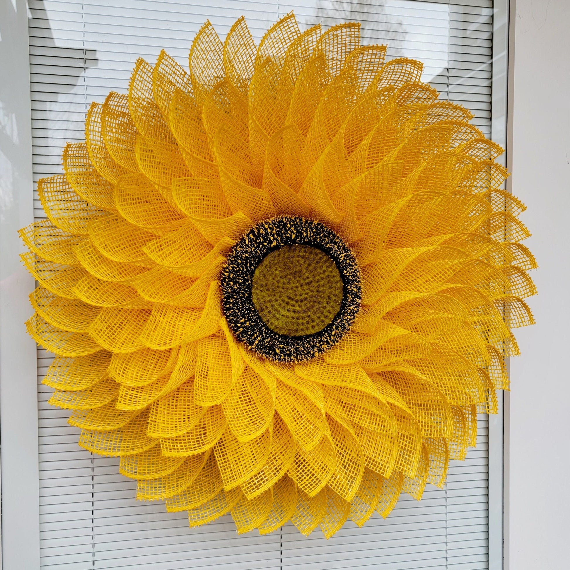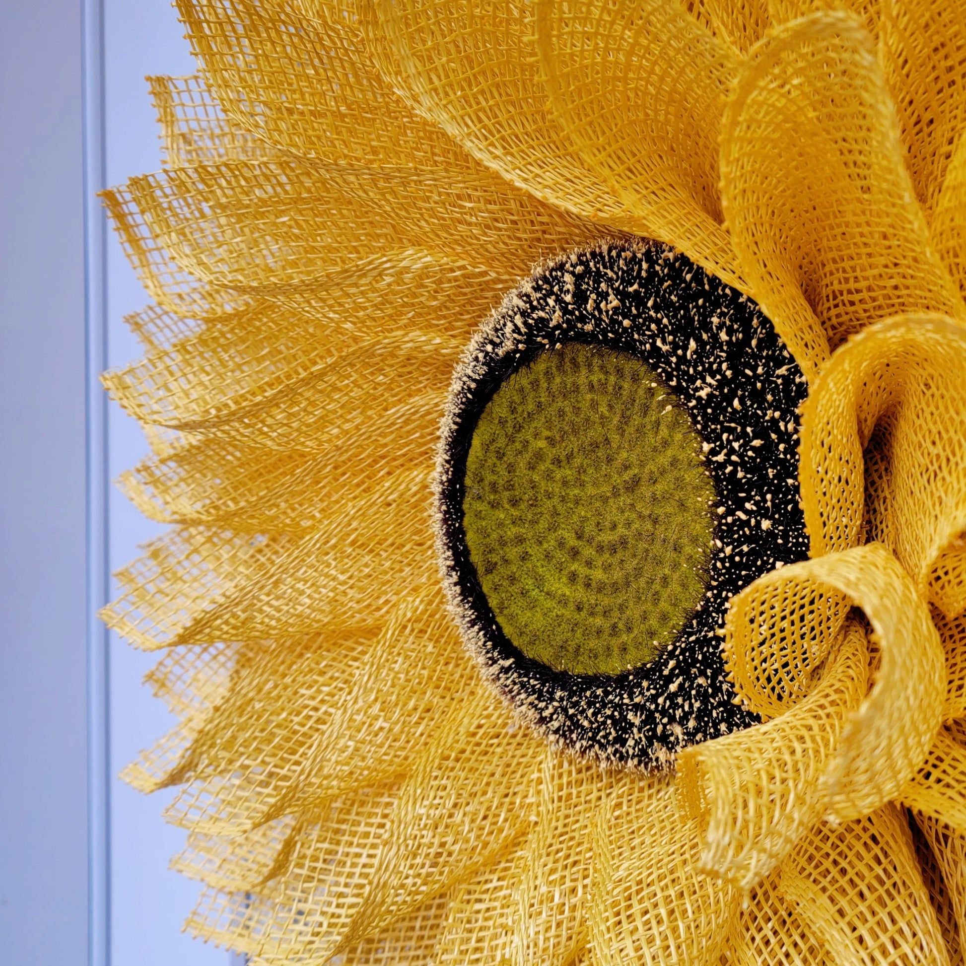 - Flower Center: The center features a realistic-looking styrofoam base sunflower head with simulated pollen droplets.