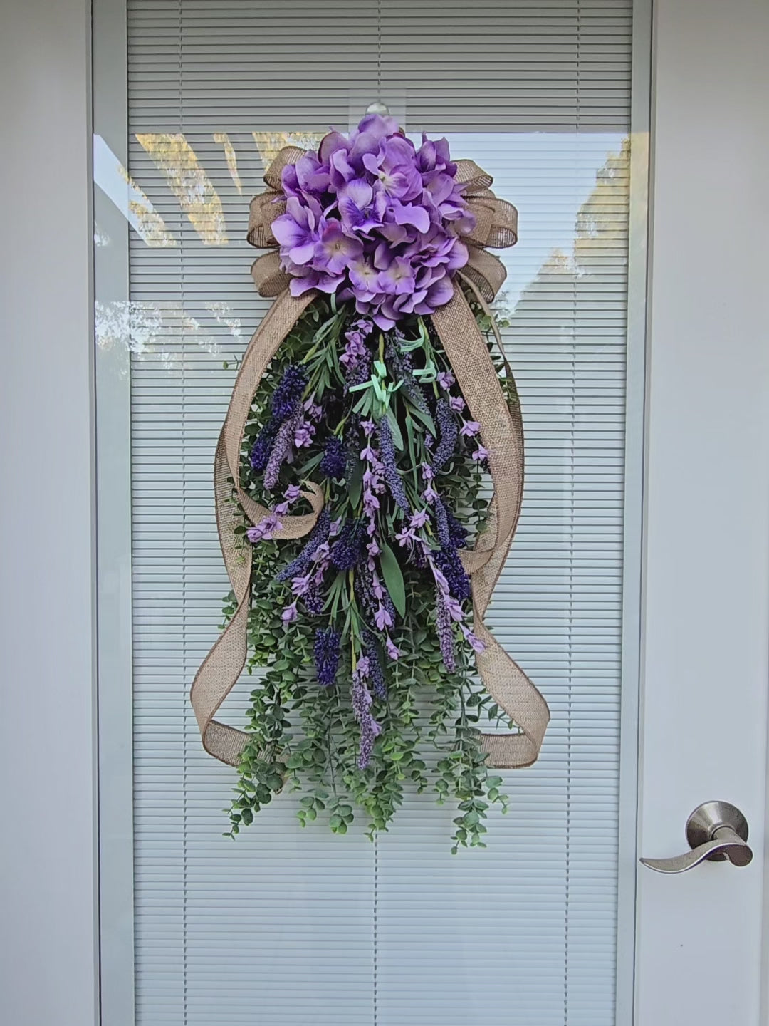 Make a Statement with Our Handcrafted Rustic Eucalyptus Hydrangea Lavender Teardrop Wreath Swag