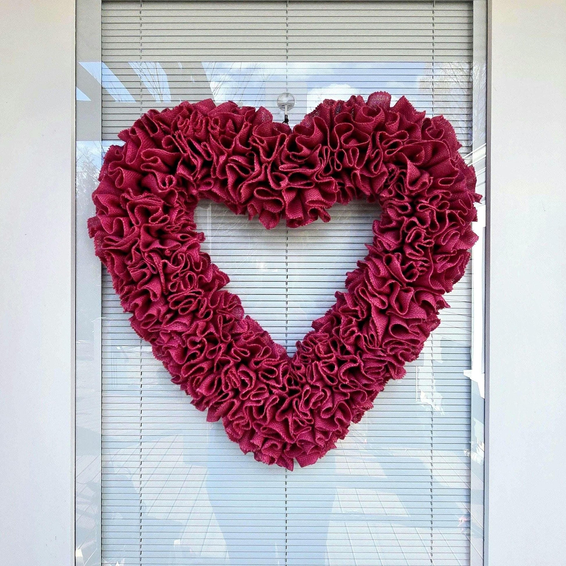 - Handcrafted with 60 feet of premium thick-weave burlap, this heart-shaped wreath is perfect for Valentine’s Day, weddings, anniversaries, or everyday rustic home decor.