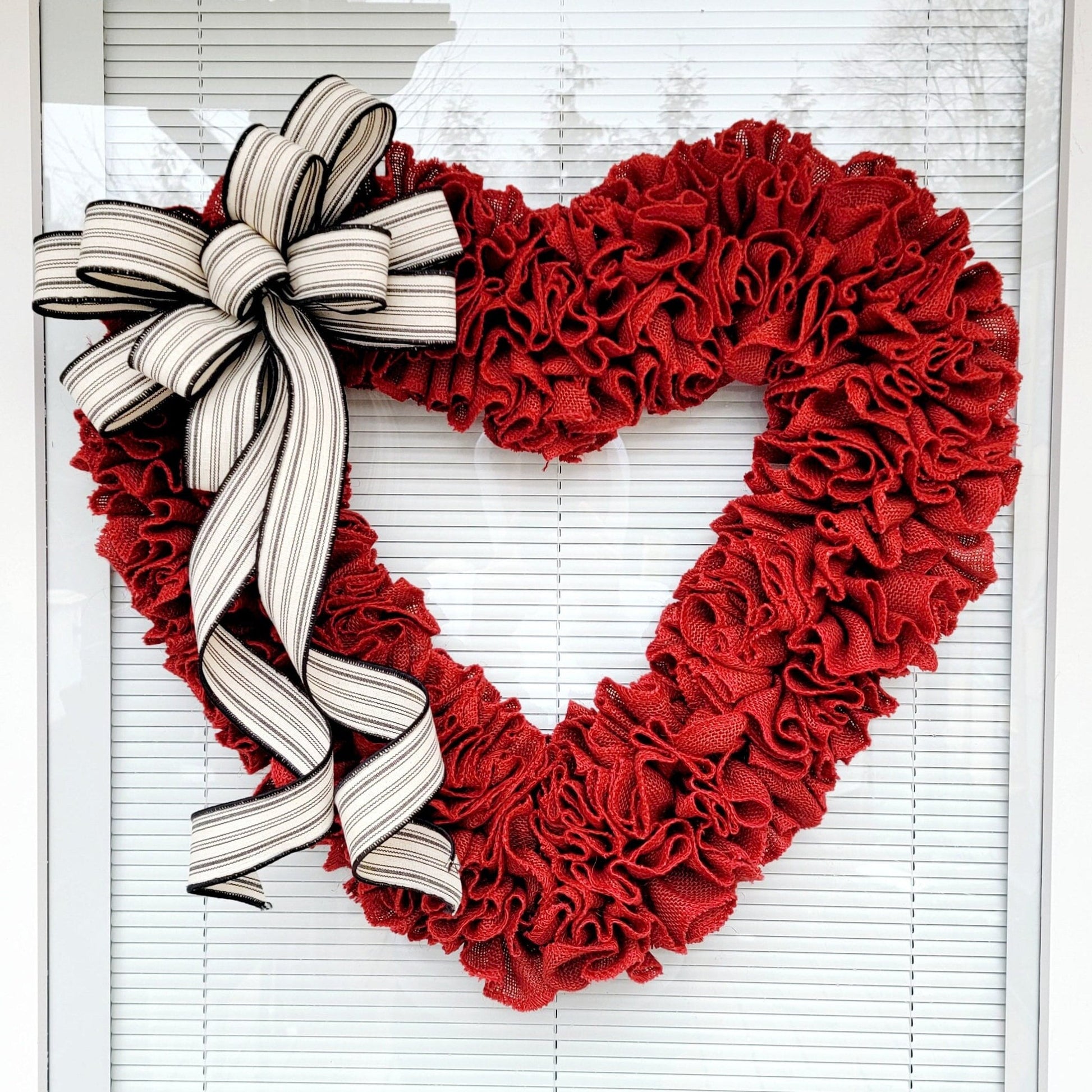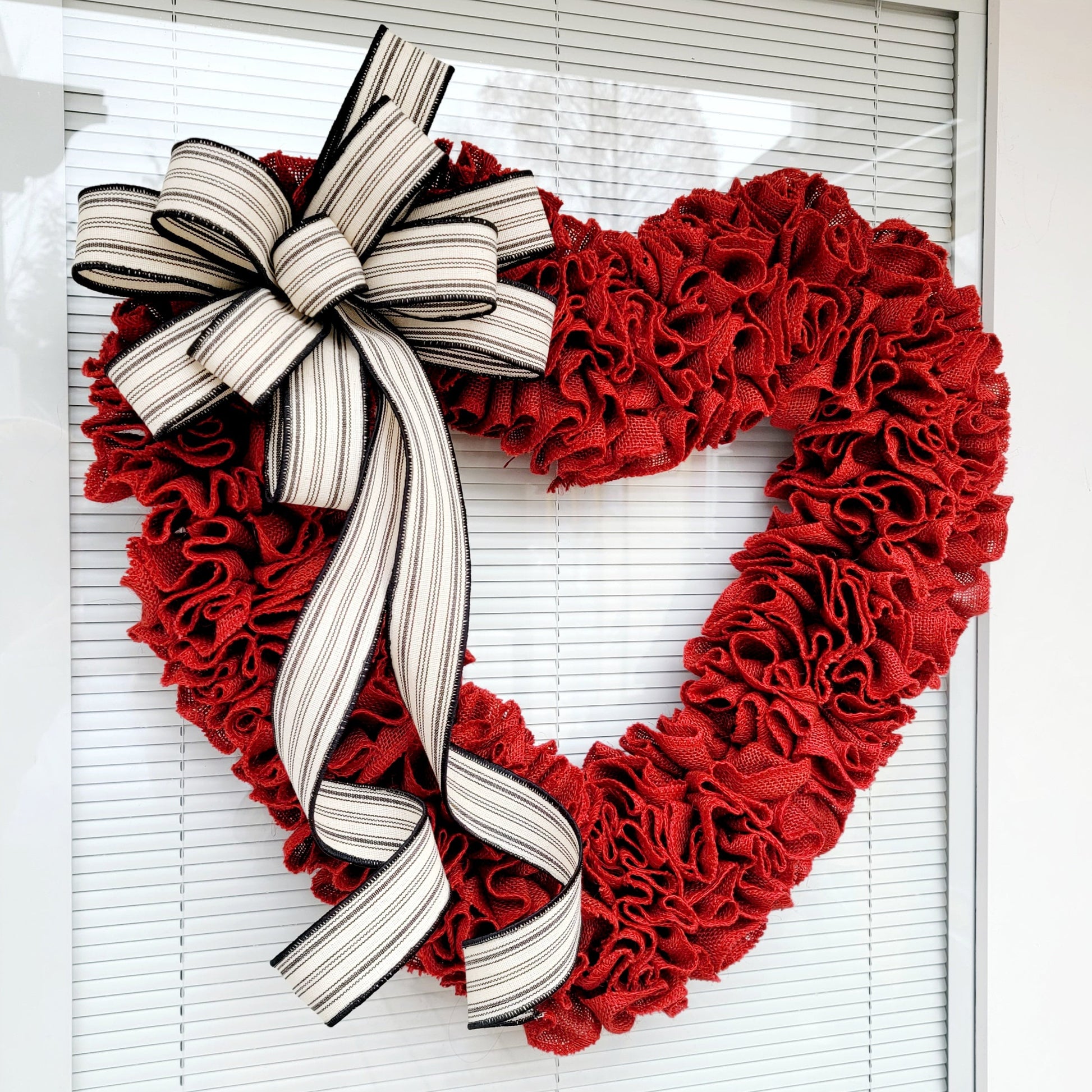 - Handcrafted with 60 feet of premium thick-weave burlap, this heart-shaped wreath is perfect for Valentine’s Day, weddings, anniversaries, or everyday rustic home decor.